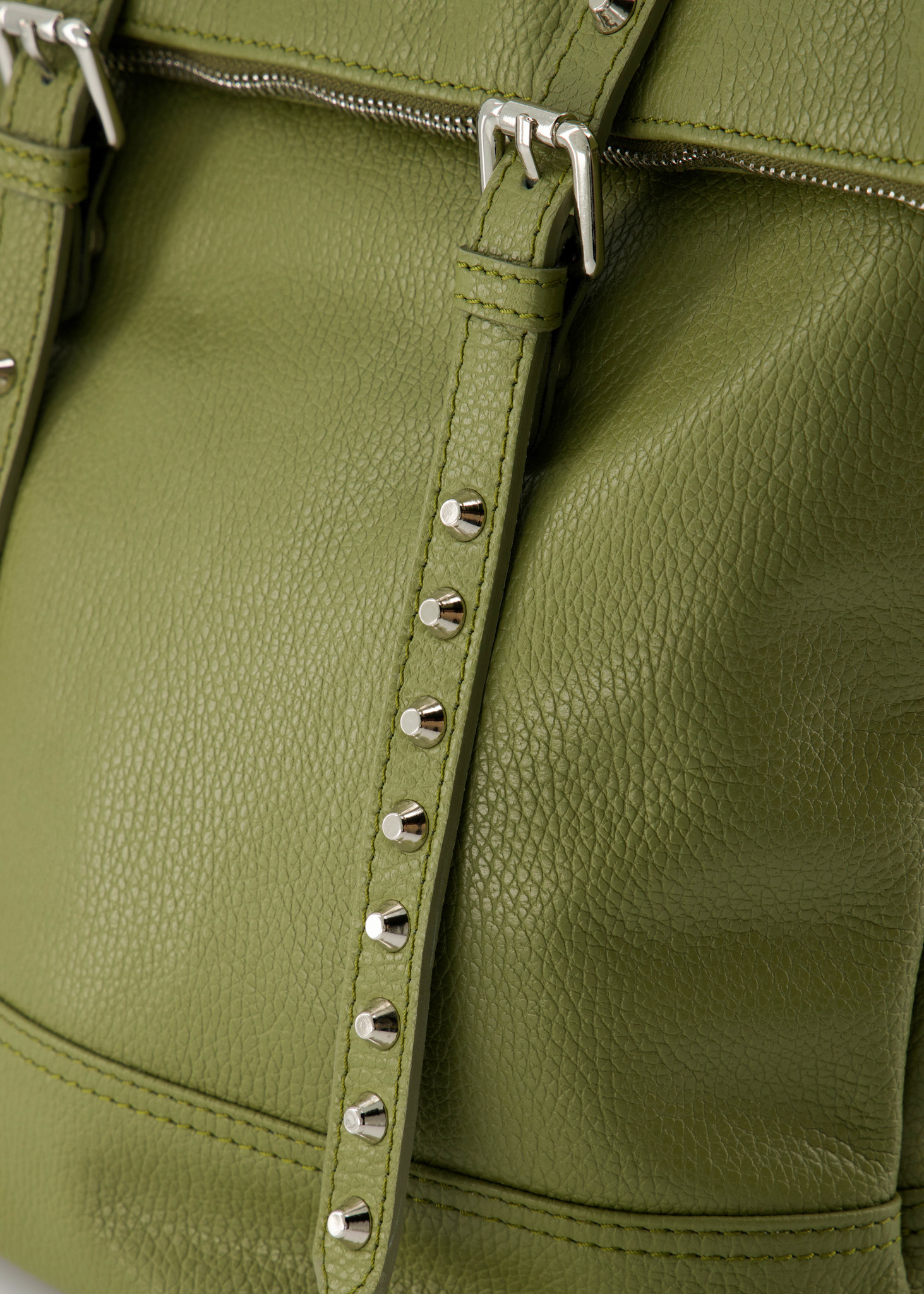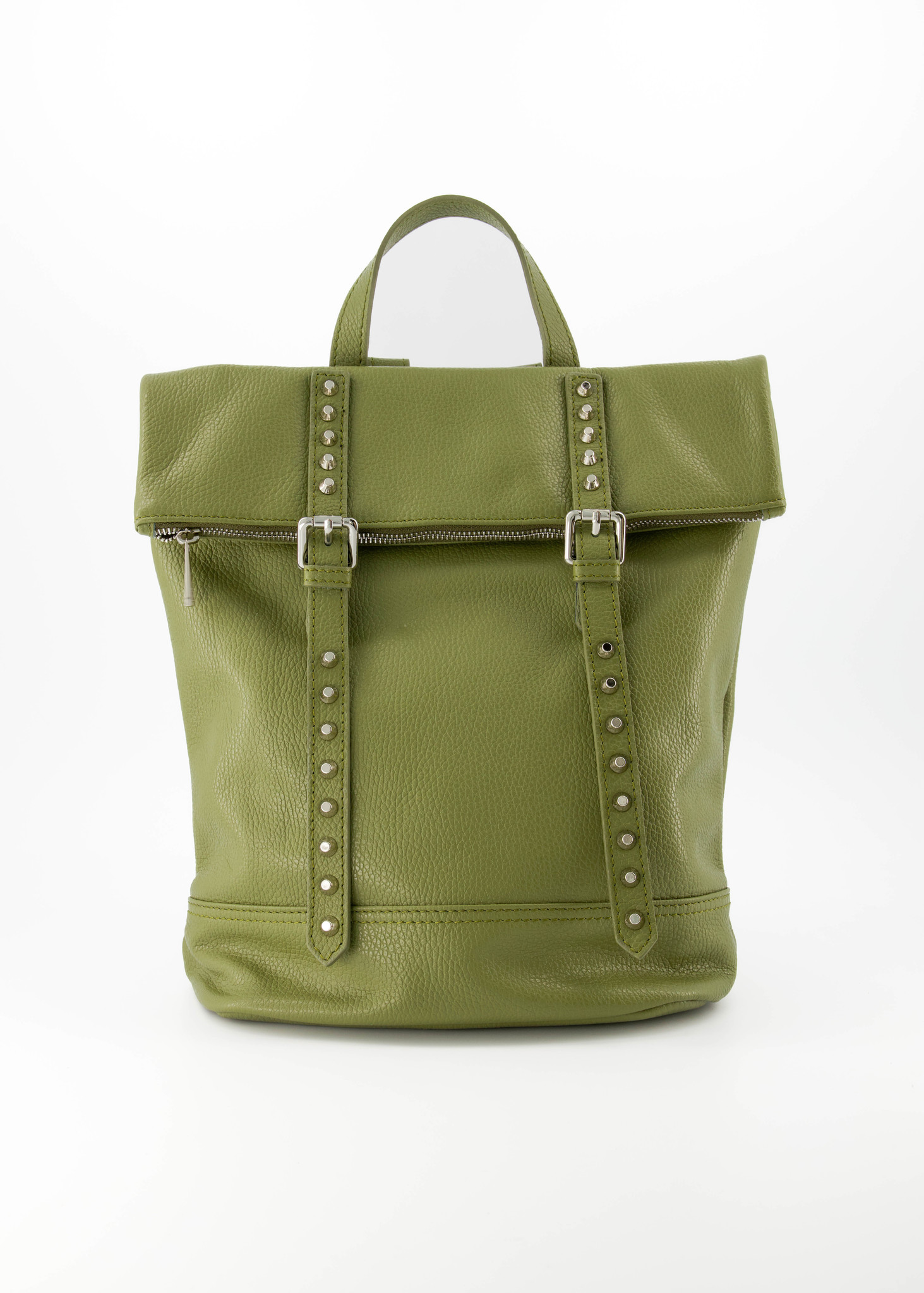 Leather backpack with zipper. The Roza backpack has studs on the straps. The handles of the backpack are adjustable and removable.