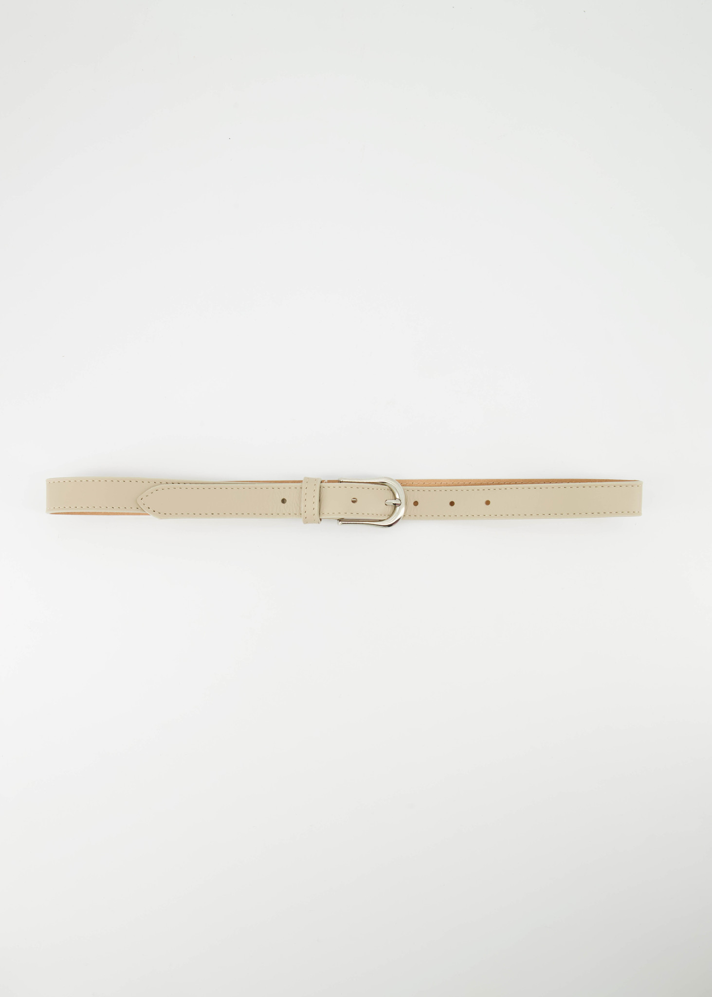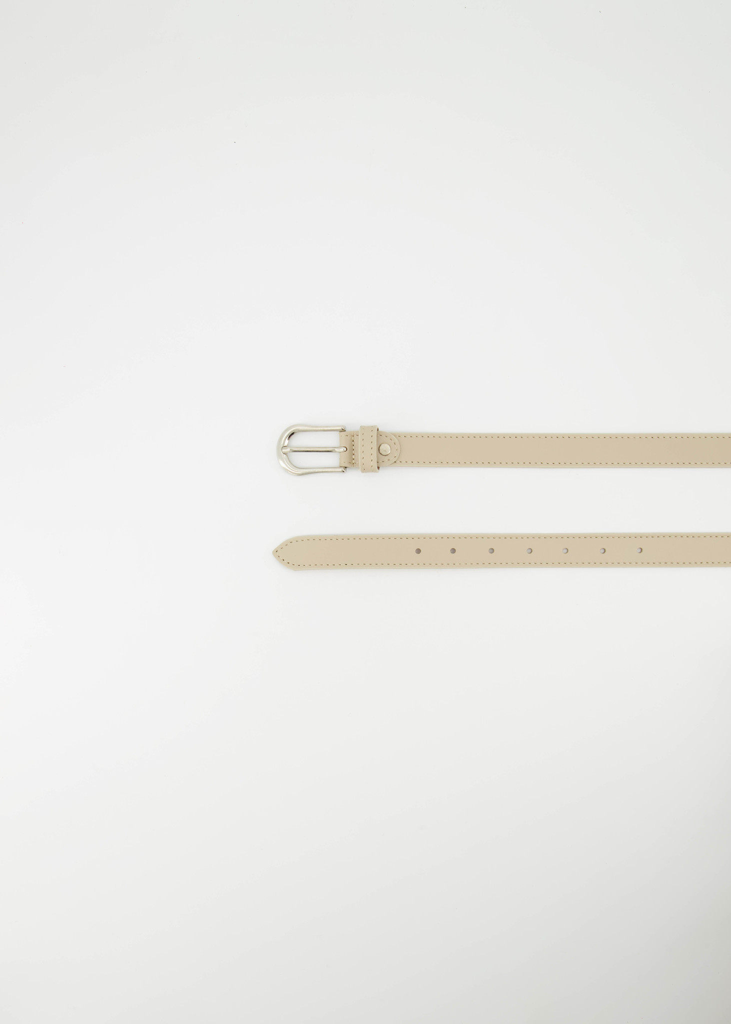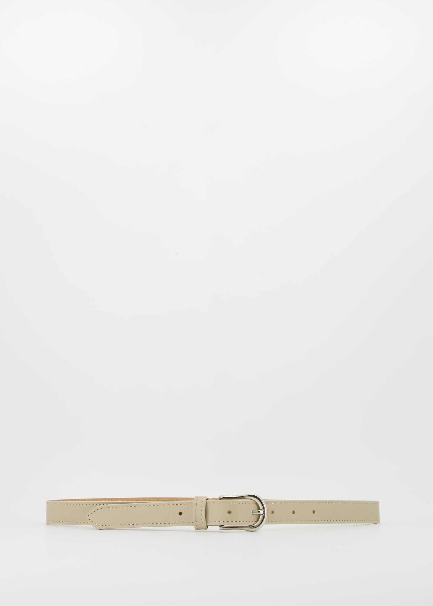 Basic leather belt of 2.5 cm wide and silver-colored buckle, available in sizes 85, 95 and 105.