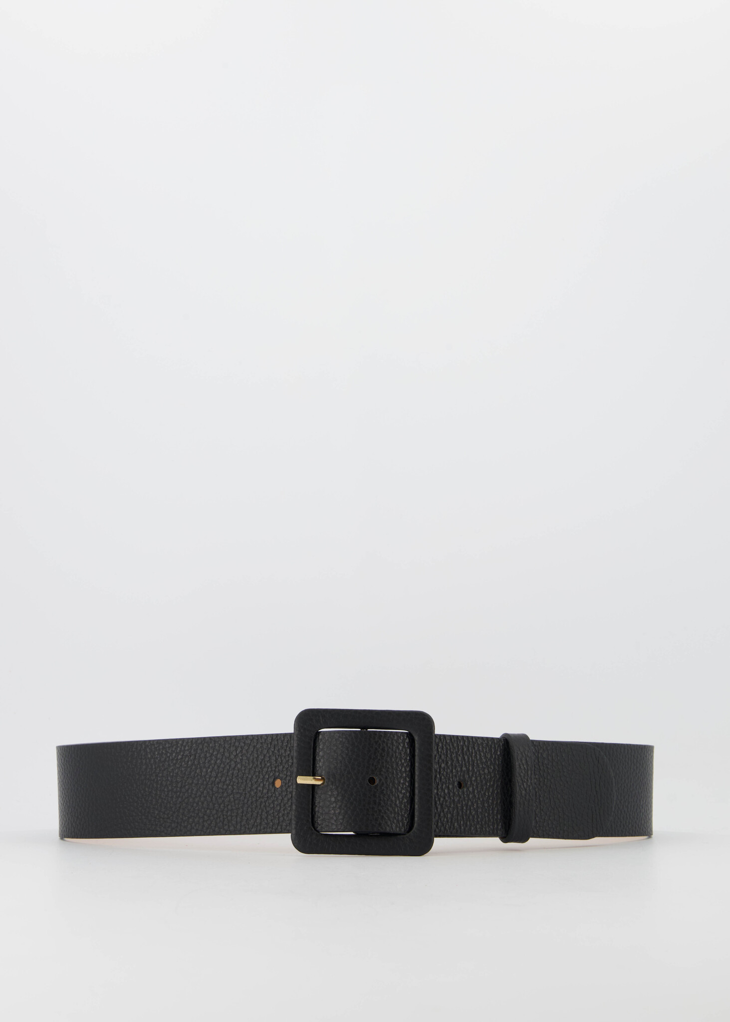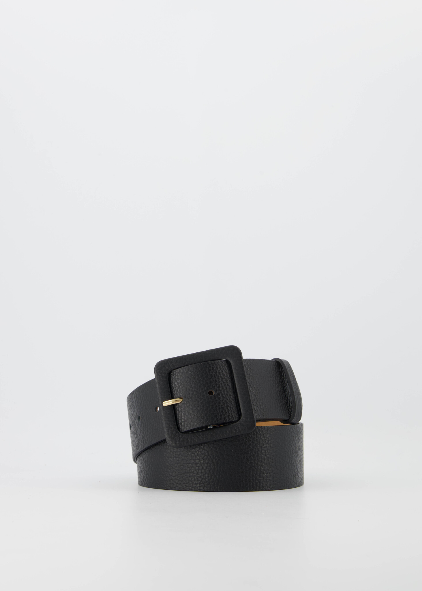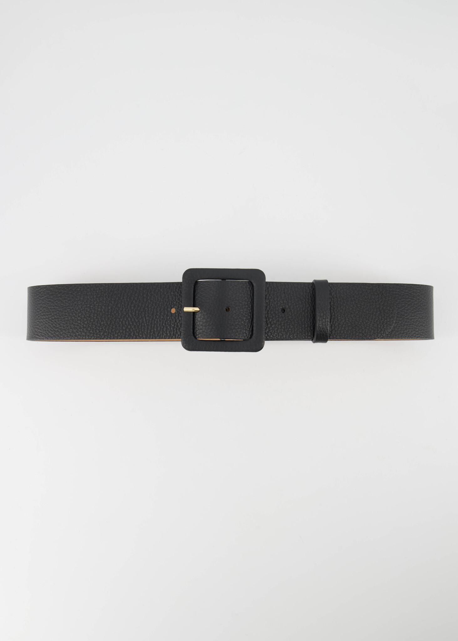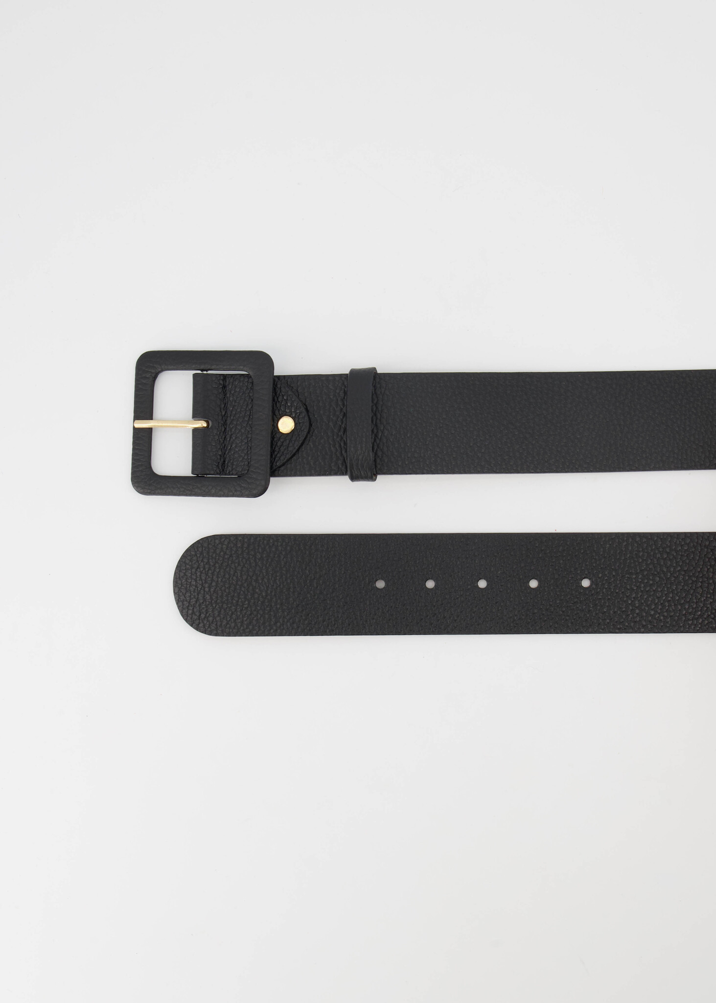 Leather belt with square buckle. The Caroline belt can be worn at the waist, but also as a trouser belt. Available in various colors to complete the outfit. The belt is 5 cm wide and available in sizes 85, 95 and 105 cm.