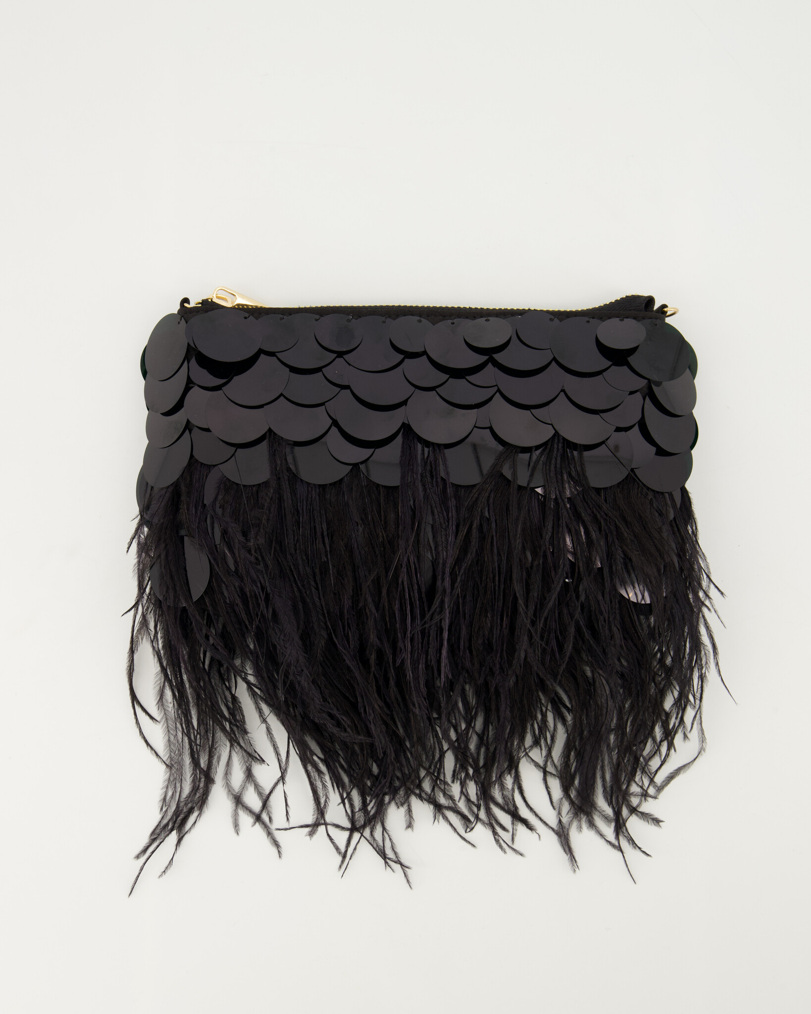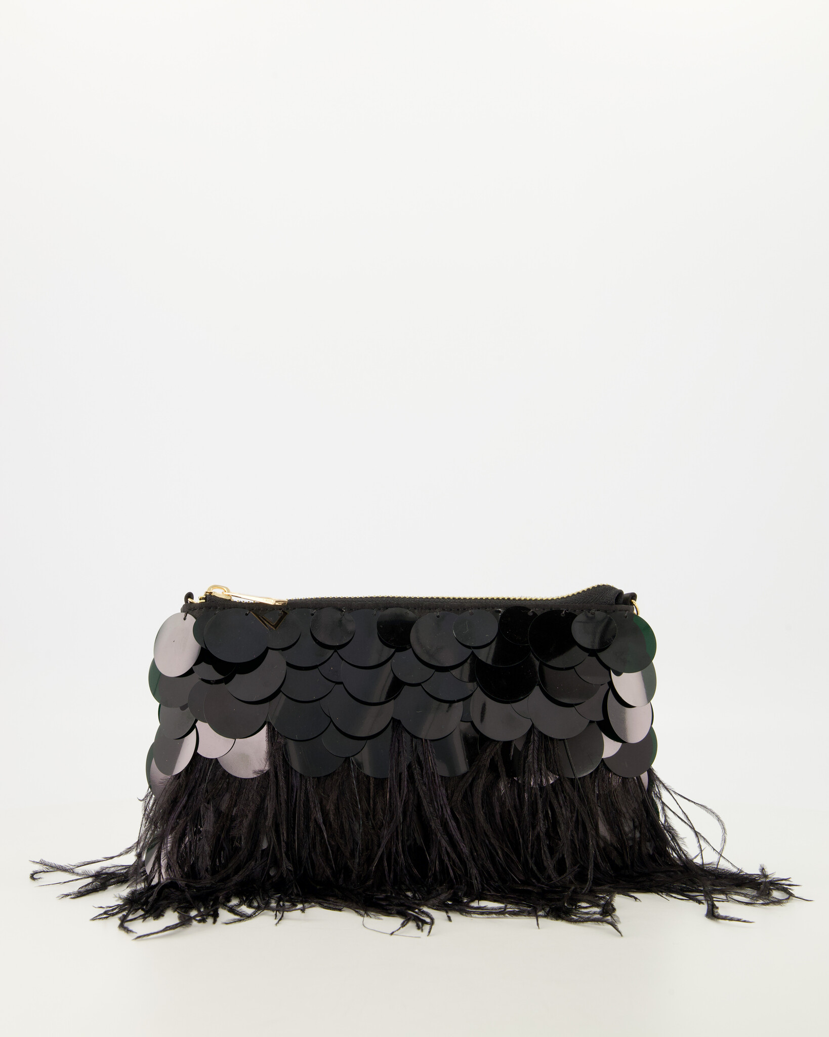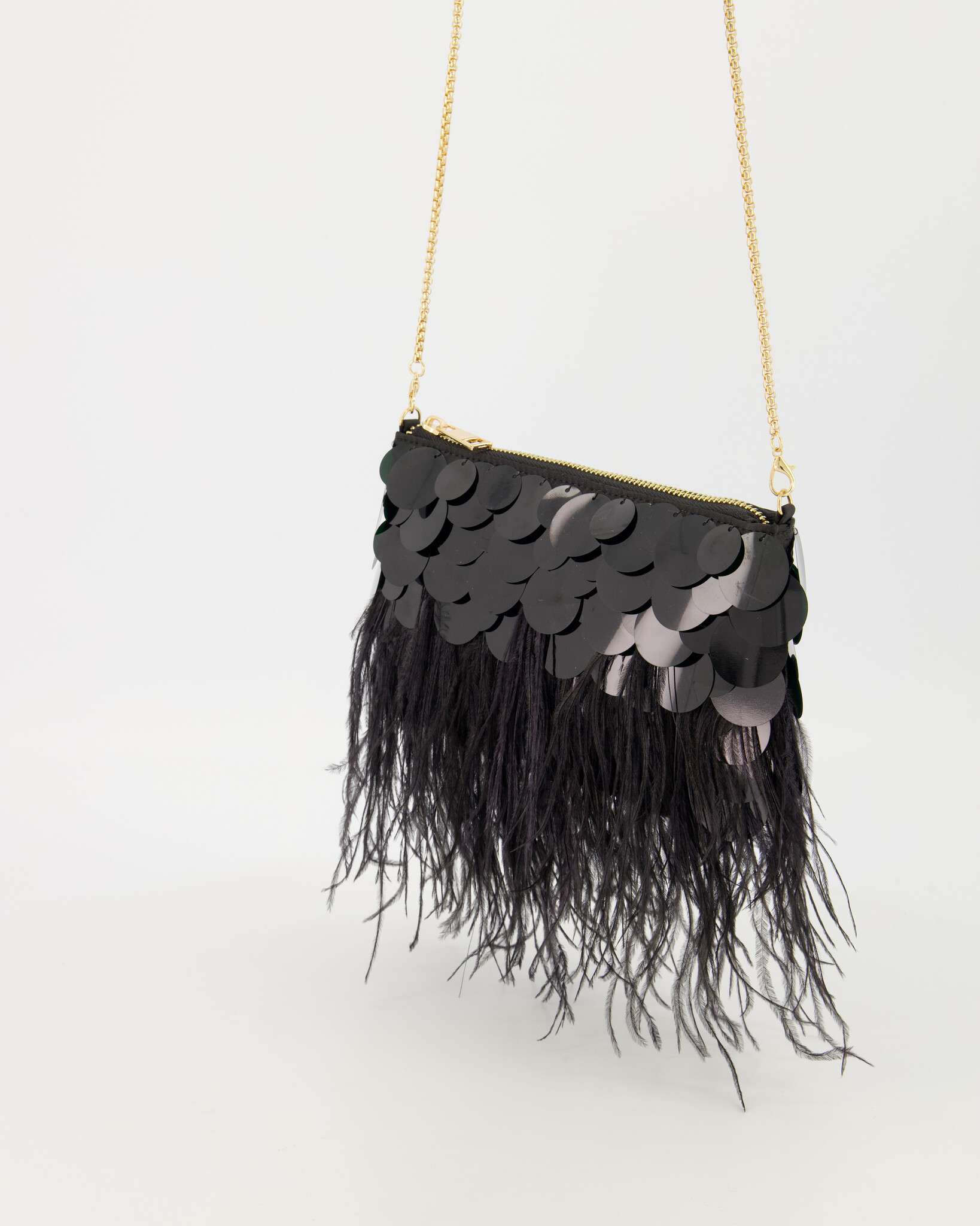 Add glamor to any outfit with the striking Adele clutch. Decorated with gold sequins and lush fringes, this clutch is perfect for parties and special occasions. The bag offers enough space for essentials such as phone, keys and make-up, and has a handy zipper.