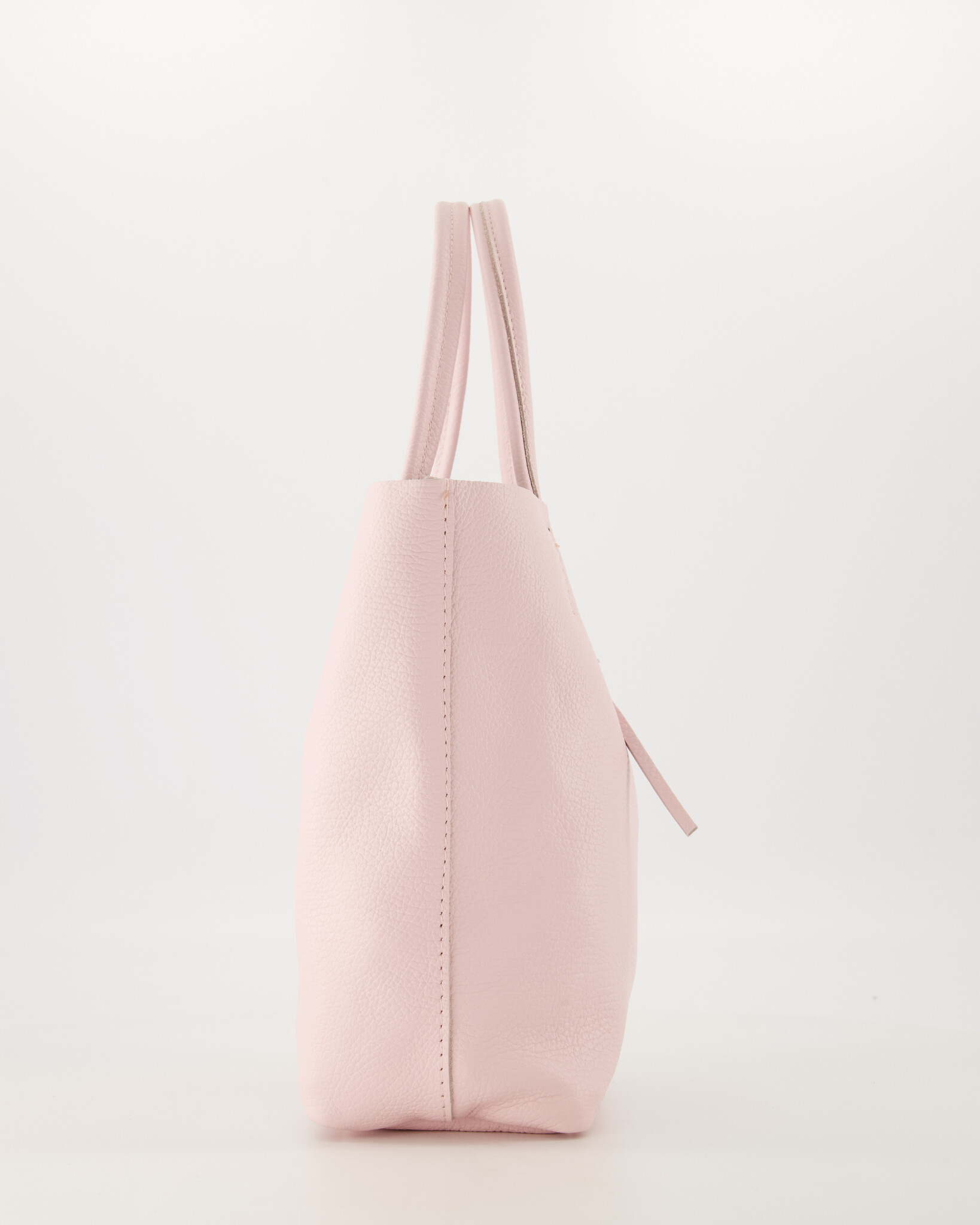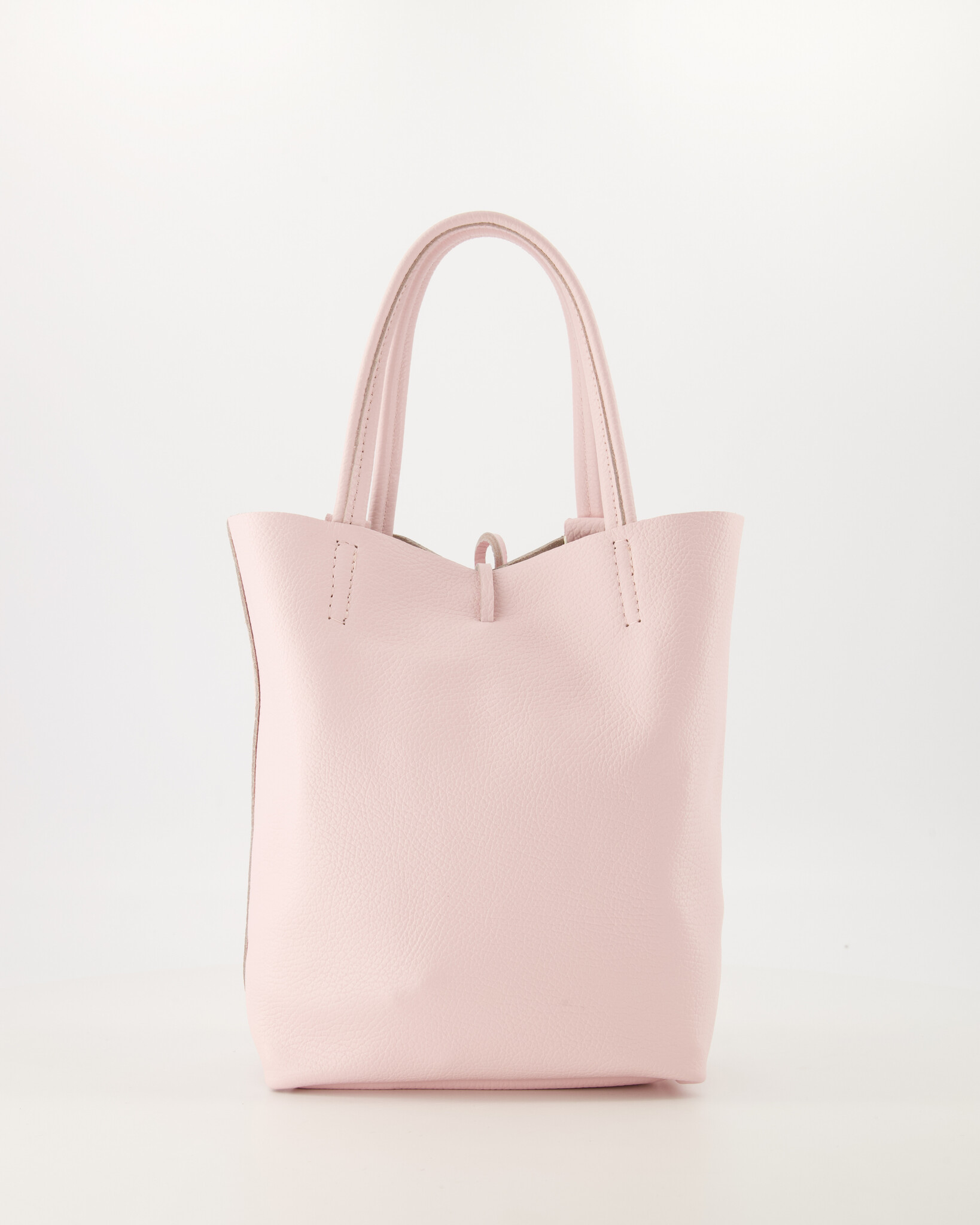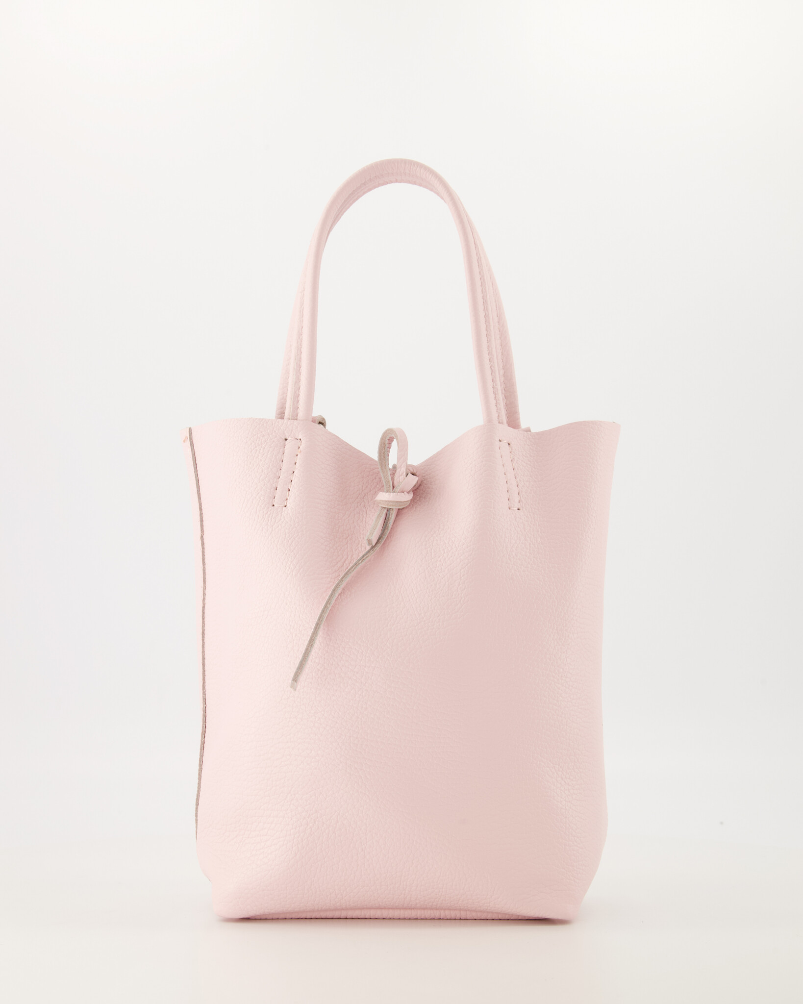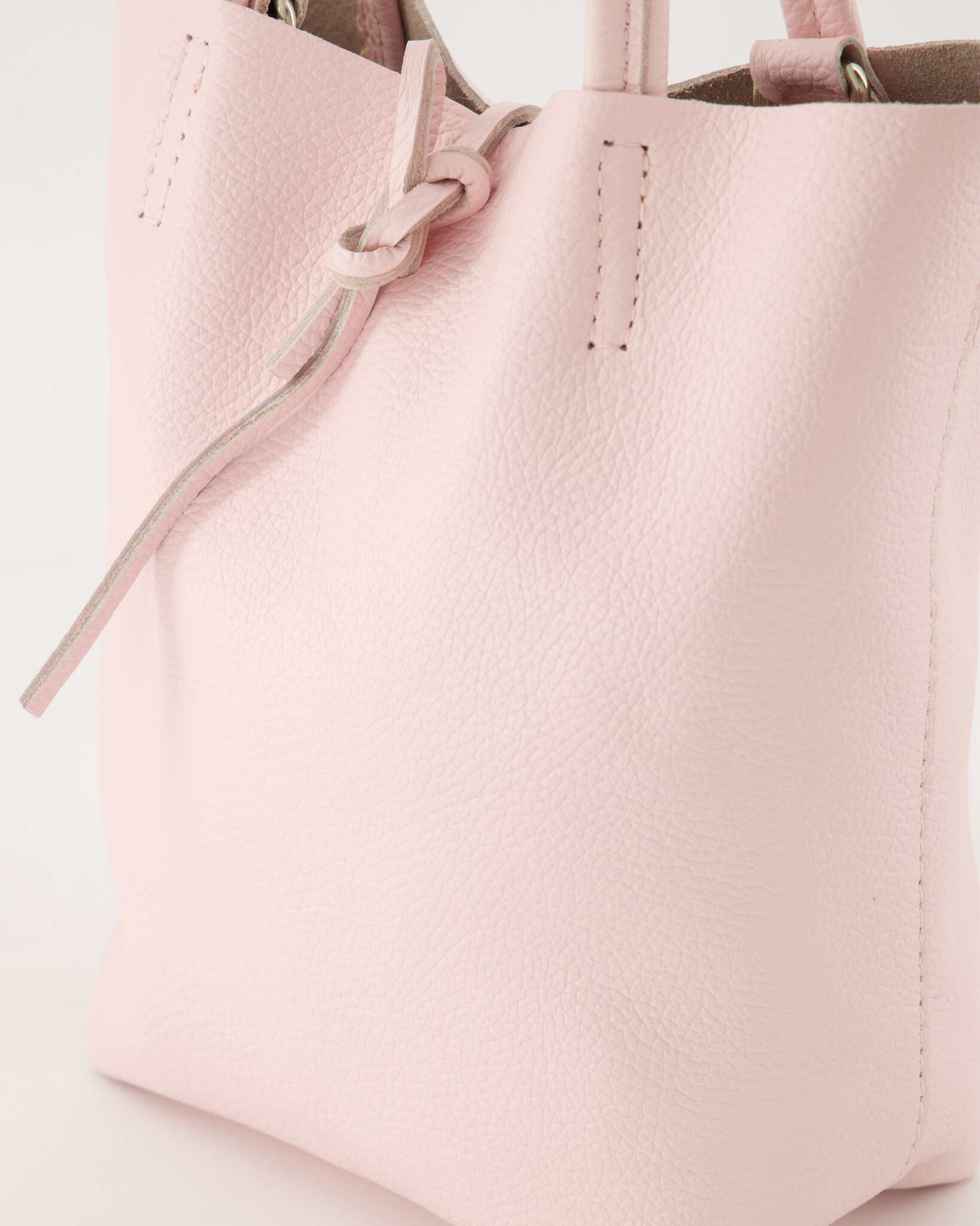 This leather mini shopper has a rope closure and comes with a removable and adjustable long handle so you can also wear it as a crossbody bag.