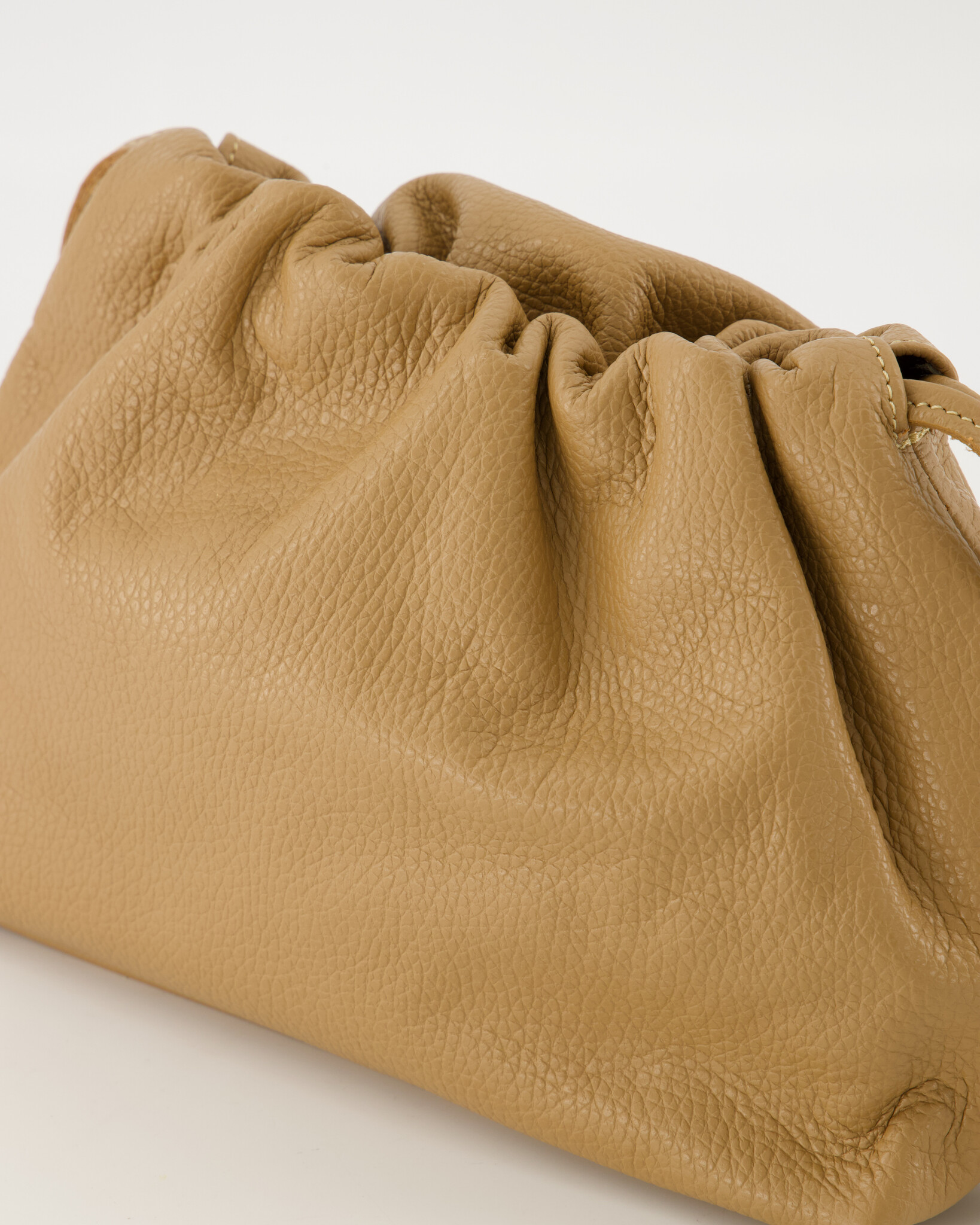 The Arela bag is an elegant bag with a removable and adjustable handle, so it can be worn as a handbag or crossbody. The trendy drawstring closure gives the bag a unique and modern look.