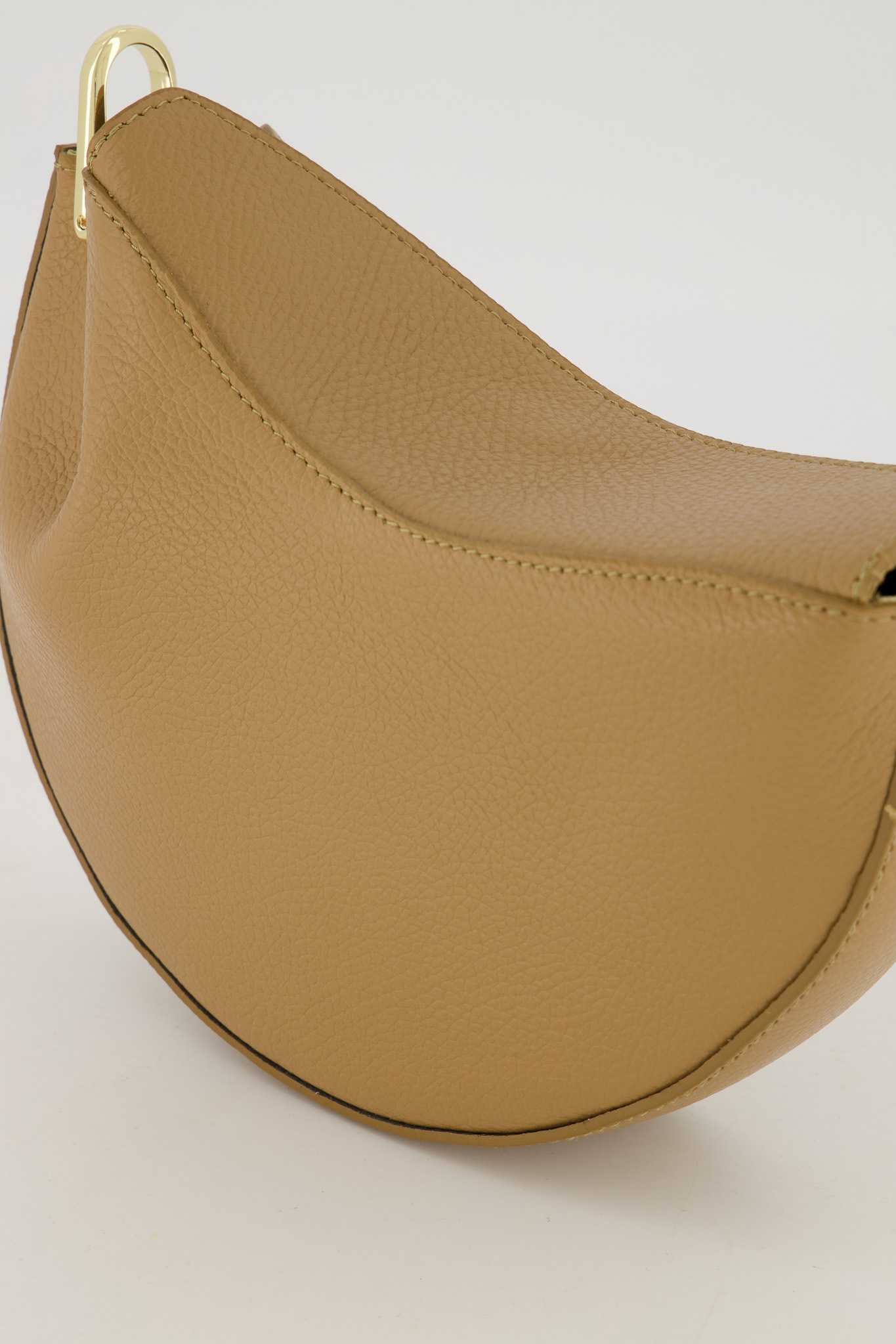 The Cookie Bag is a trendy semi-circular bag made of Italian leather with gold-colored details. Equipped with an adjustable leather shoulder strap and a spacious main compartment with a zip pocket on the inside. Closes with a magnetic clasp for a stylish and practical look