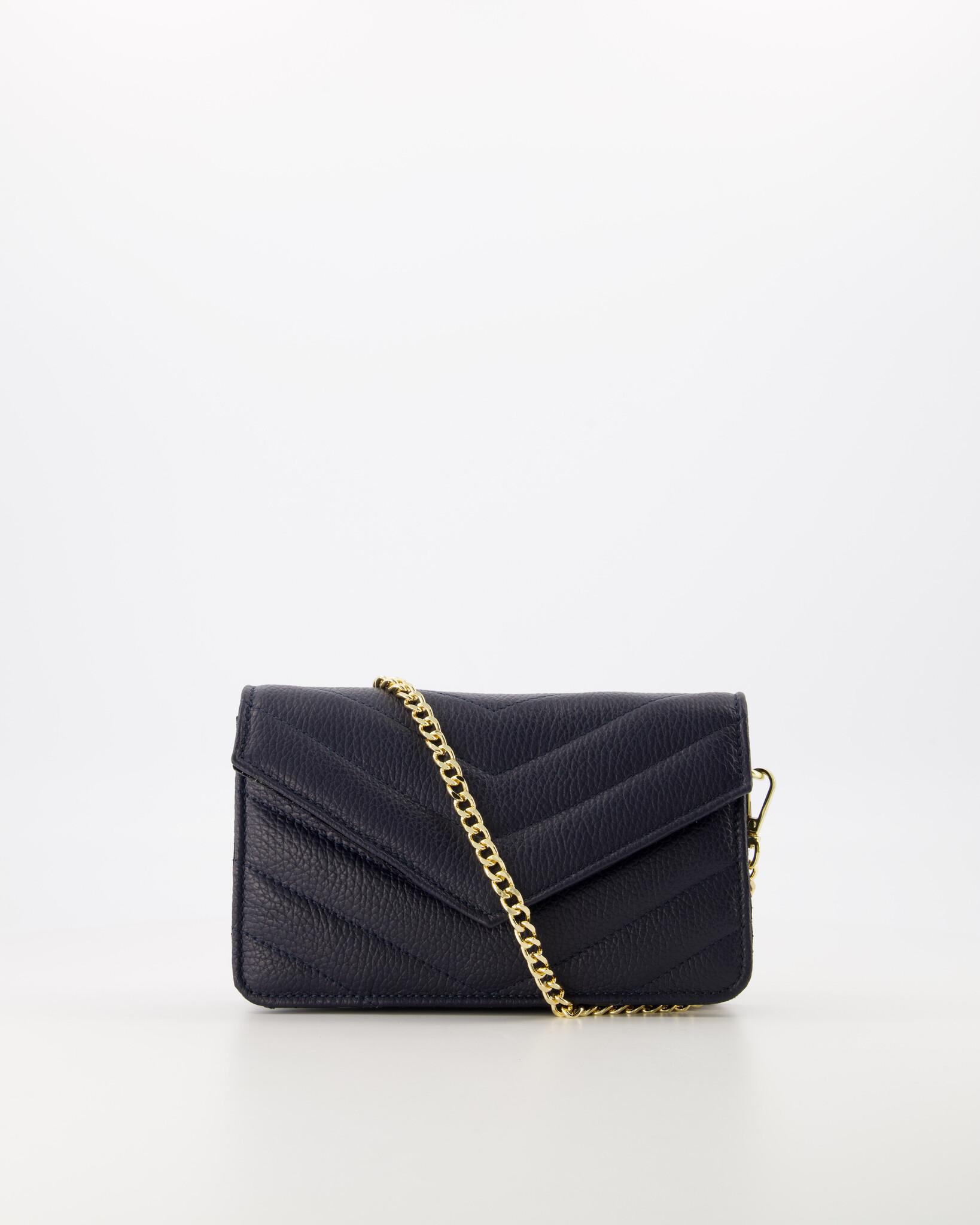 Elegant yet eye-catching, the Laurie crossbody bag is crafted in Italy and made from genuine leather with a gold-toned chain link strap. This bag can be worn as a clutch to complement your evening attire or you could go hands-free and wear it as a shoulder/crossbody bag. Available in multiple colours.