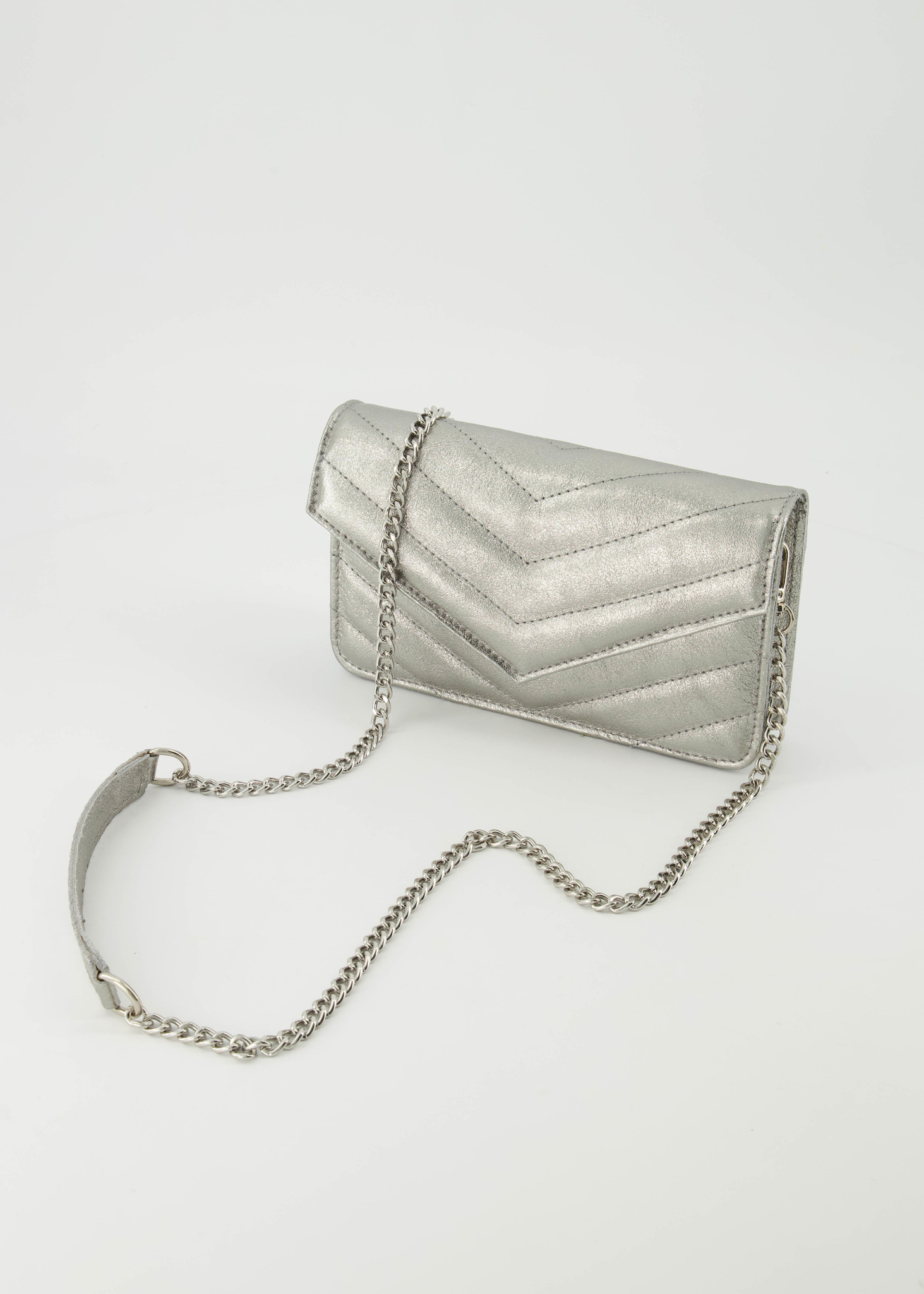 Elegant yet eye-catching, the Laurie crossbody bag is crafted in Italy and made from metallic leather with a silver-toned chain link strap. This bag can be worn as a clutch to complement your evening attire or you could go hands-free and wear it as a shoulder/crossbody bag. Available in multiple colours.