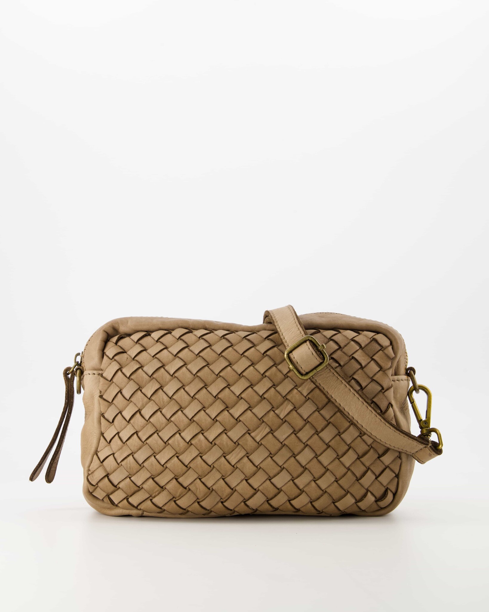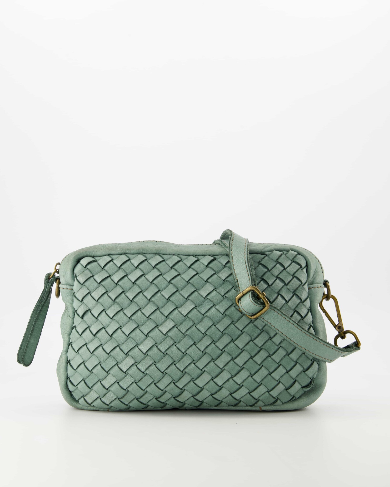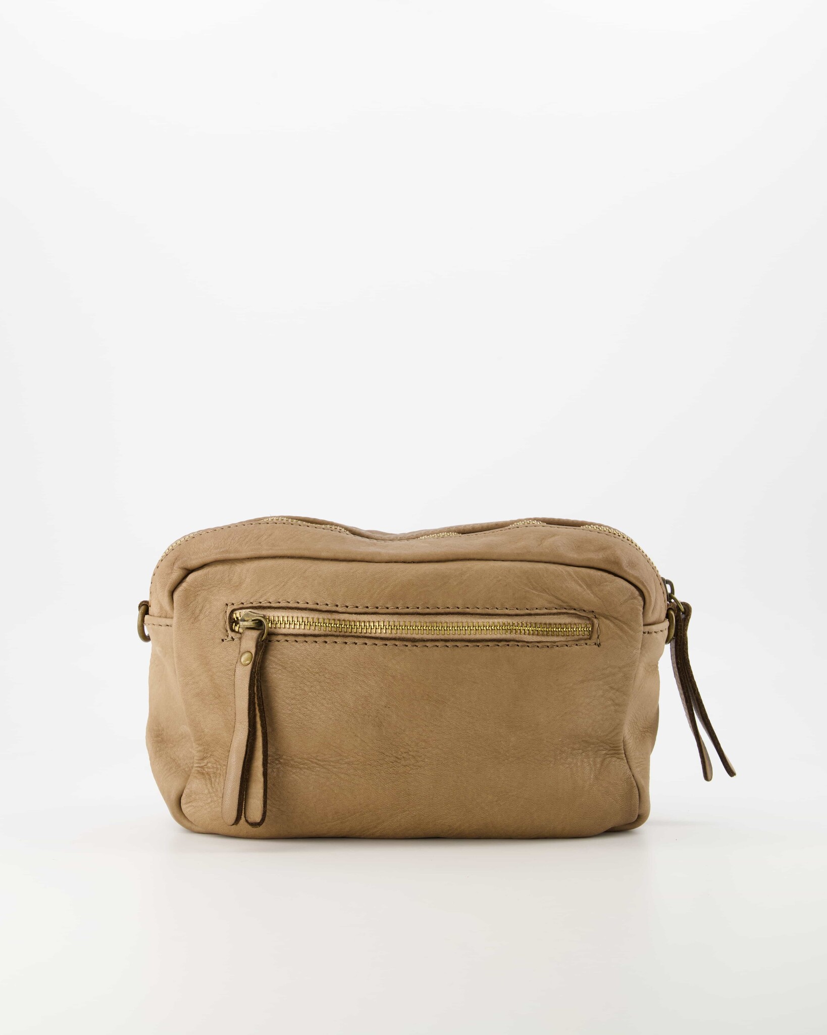 Loren is a washed leather crossbody bag. The bag has a detachable and adjustable leather strap. The bag has an inner compartment with a zip pocket on the inside. The Loren crossbody bag is equipped with bronze-colored hardware.