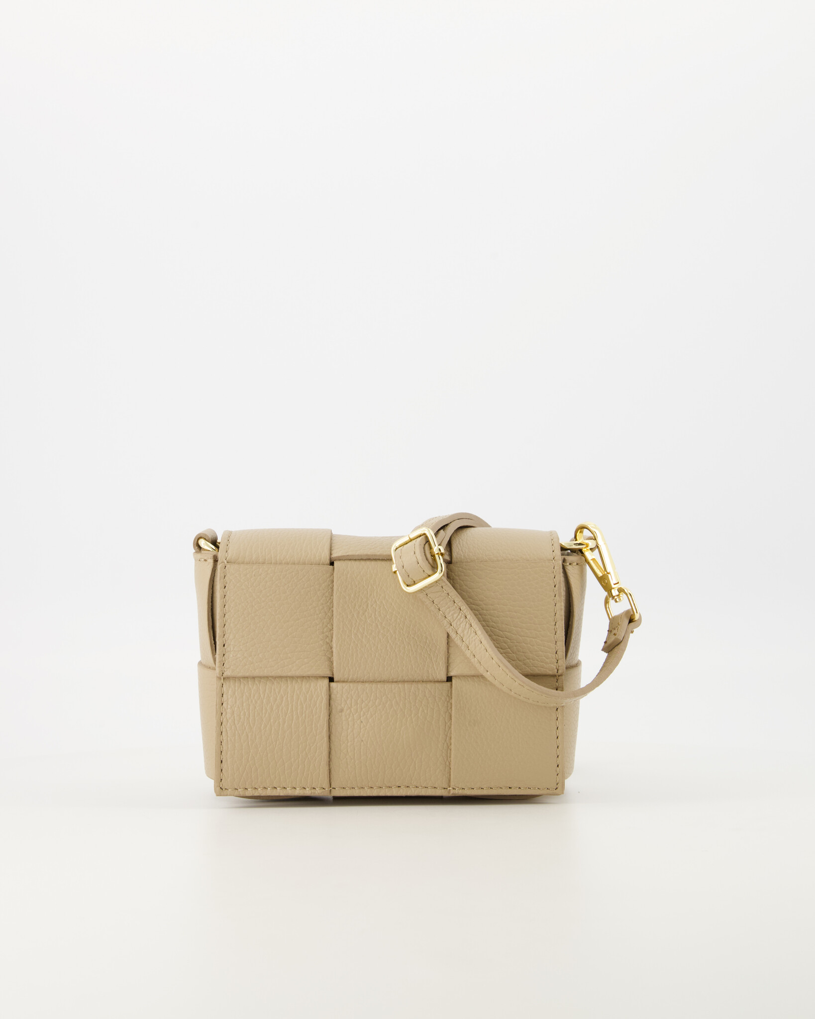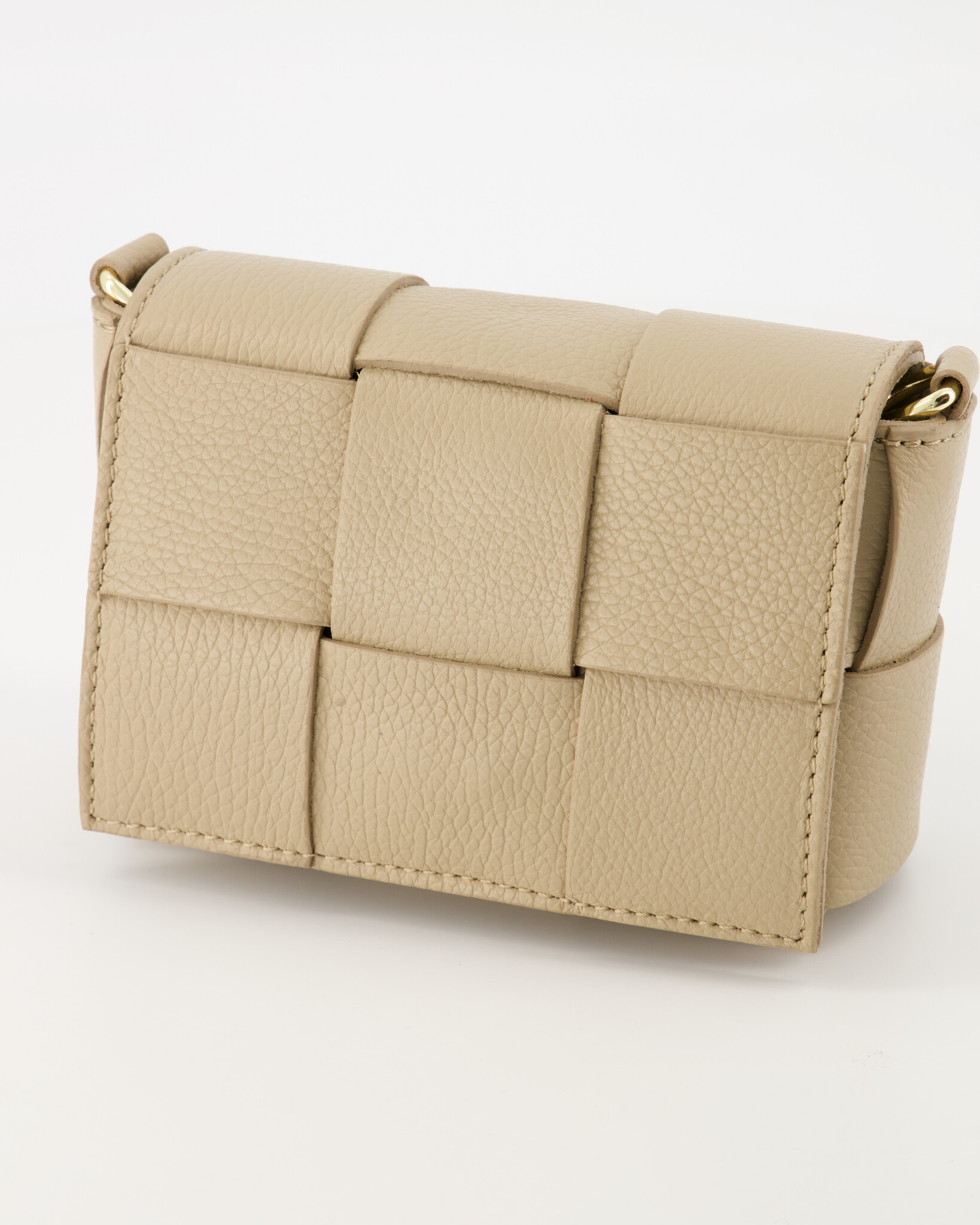 Discover the Steef leather crossbody bag: woven leather details, with a handy flap with magnetic closure. The spacious main compartment and the removable, adjustable leather handle make this bag both practical and stylish. A small, indispensable candy for every occasion.