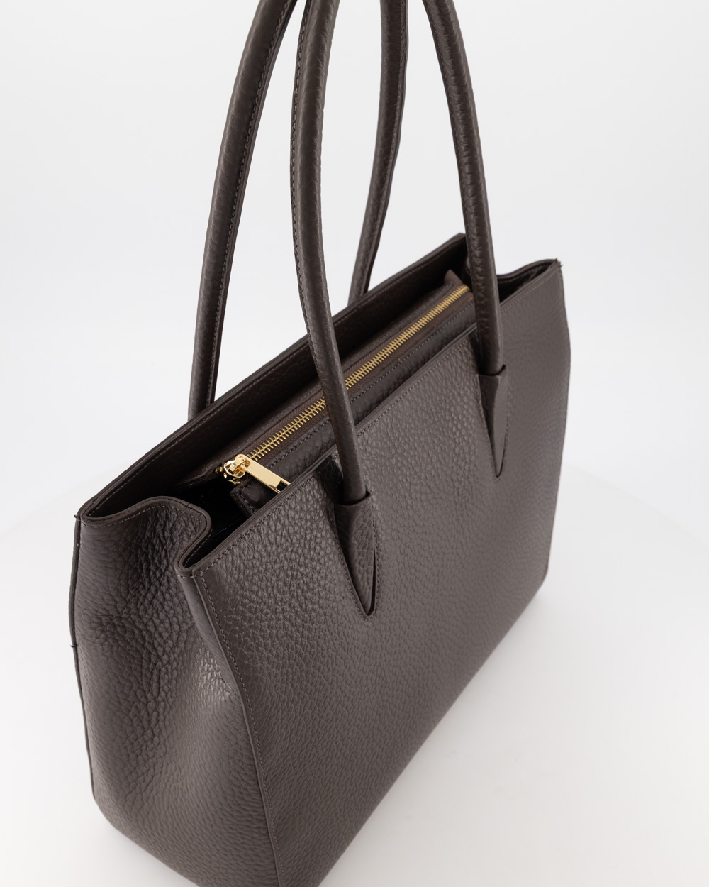 The Caitlyn shoulder bag is an elegant and versatile addition to your collection. This luxurious handbag is crafted from high-quality coarse-grain leather, known for its durable and refined appearance. The subtle, natural texture of the leather gives the bag a timeless and stylish look. The Caitlyn shoulder bag offers not only style but also functionality. The spacious main compartment is perfect for all your daily essentials and laptop, and inside, it features a handy slip pocket and a zip pocket for your valuables. This keeps everything well-organized and within reach. Thanks to the removable and adjustable strap, you can wear the Bara as a shoulder bag or crossbody, making it effortlessly adaptable to your needs and any occasion.