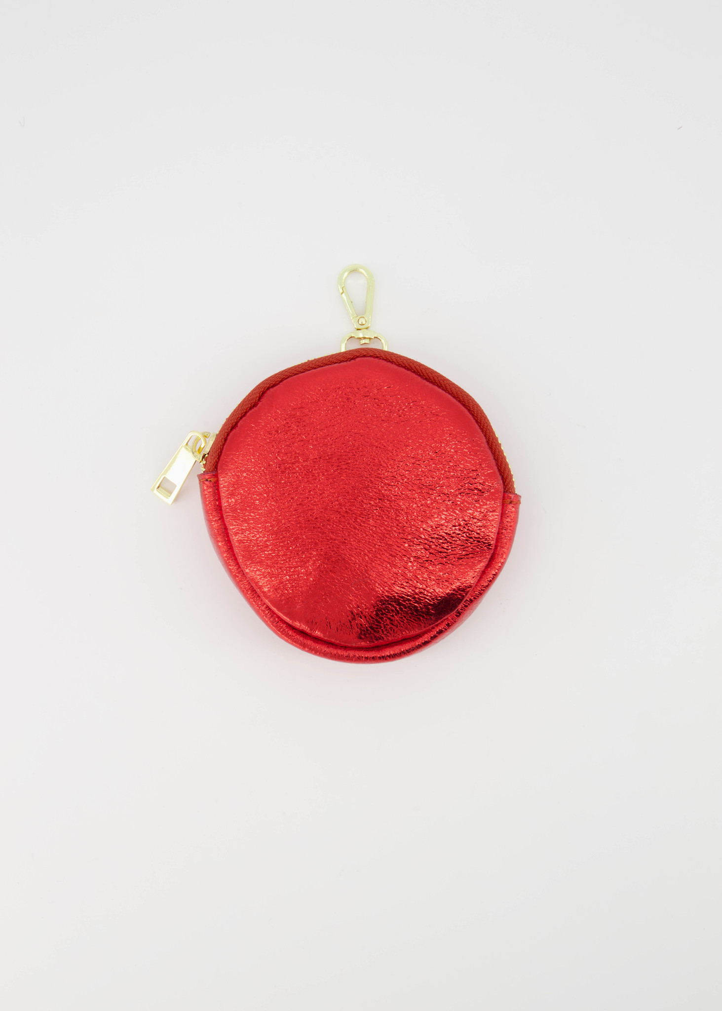 Coco is a metallic leather pouch for coins or other small items. The pouch is made of genuine leather and has a zipper. The Coco pouch can be attached to another bag or handle as an extra bag.