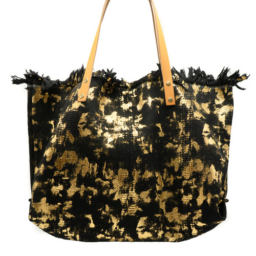 Canvas shoulder bag with a leather handle. The golden flakes are on each bag different, that makes each bag unique.