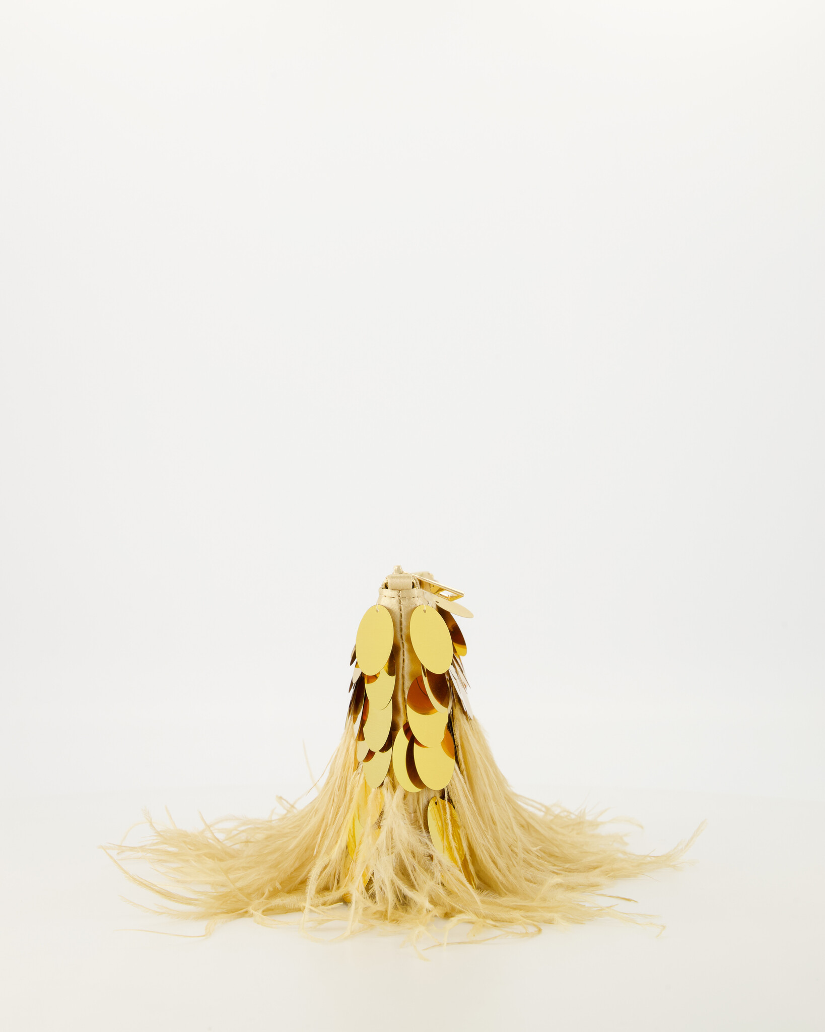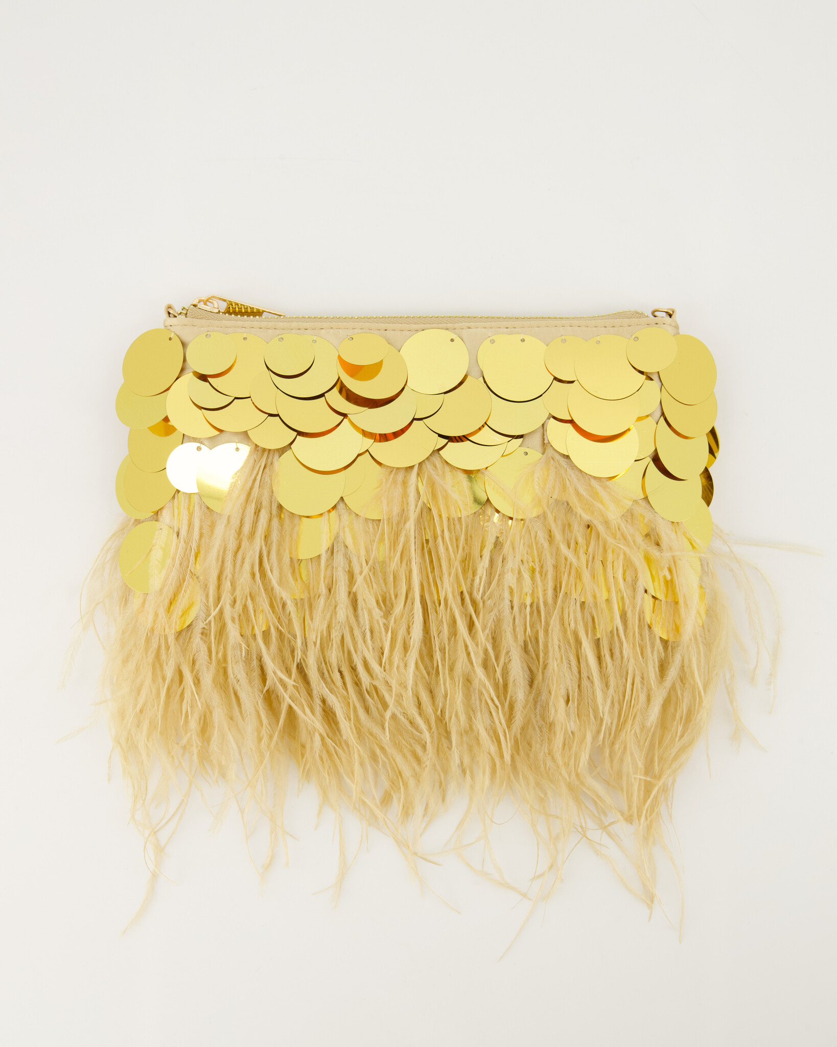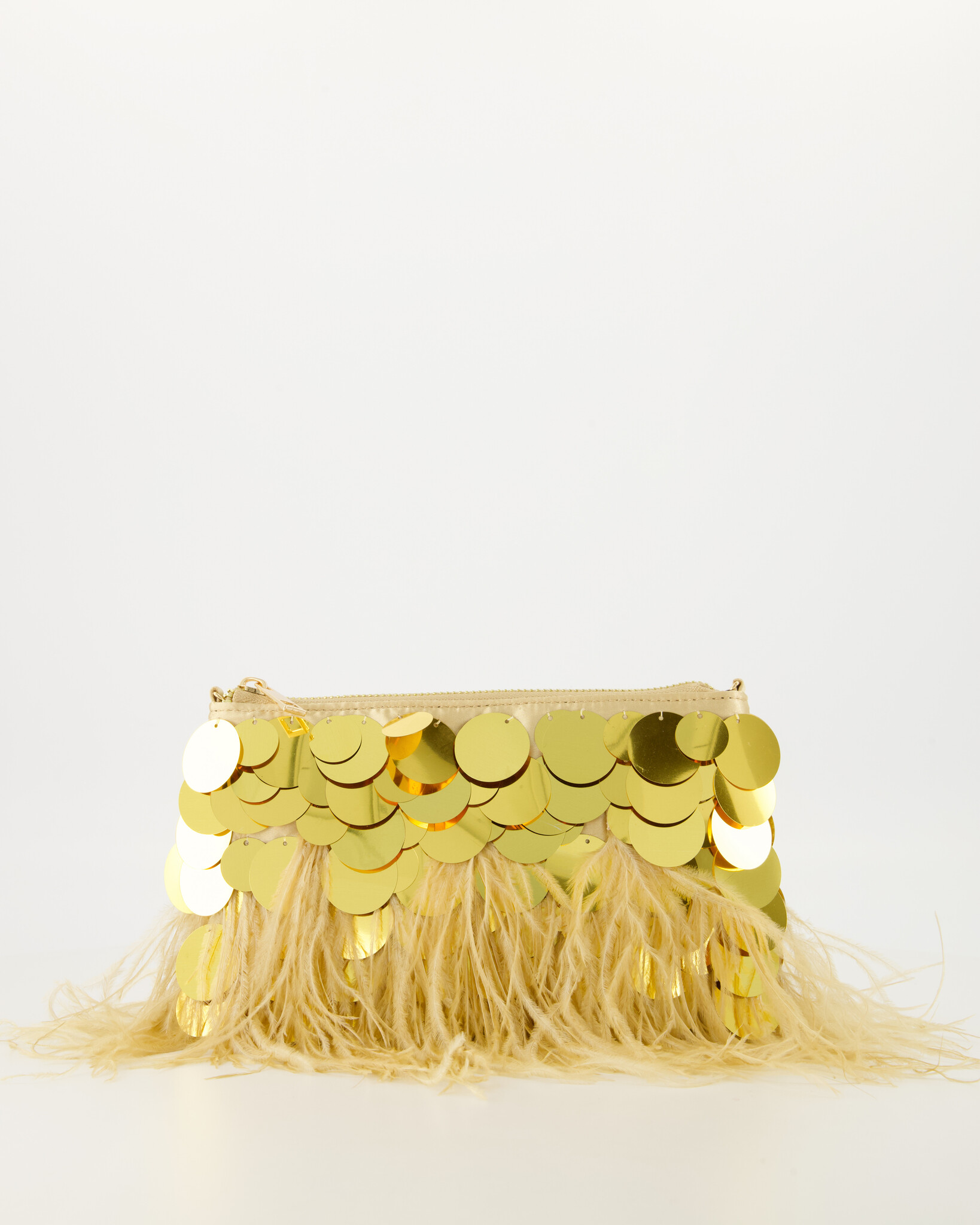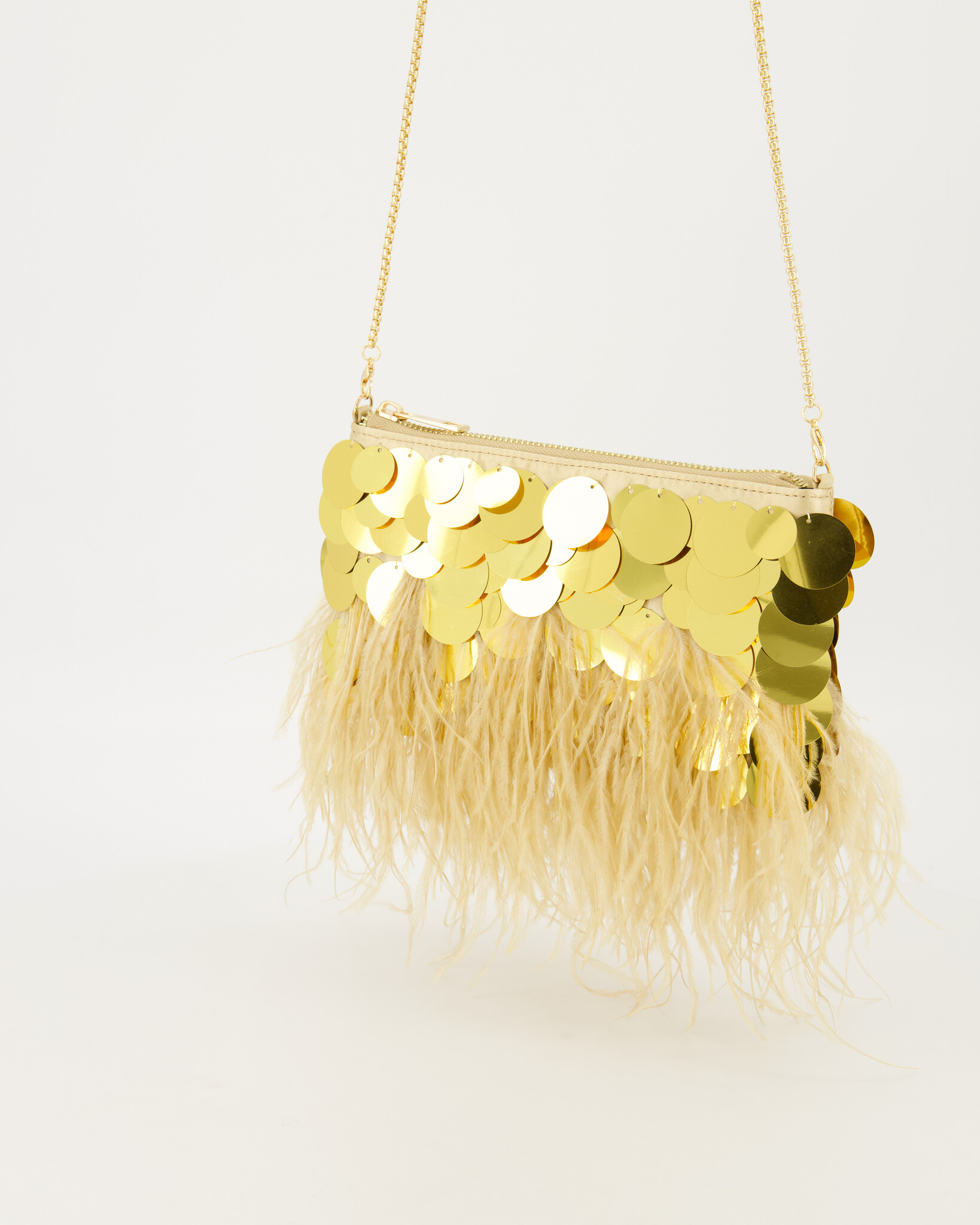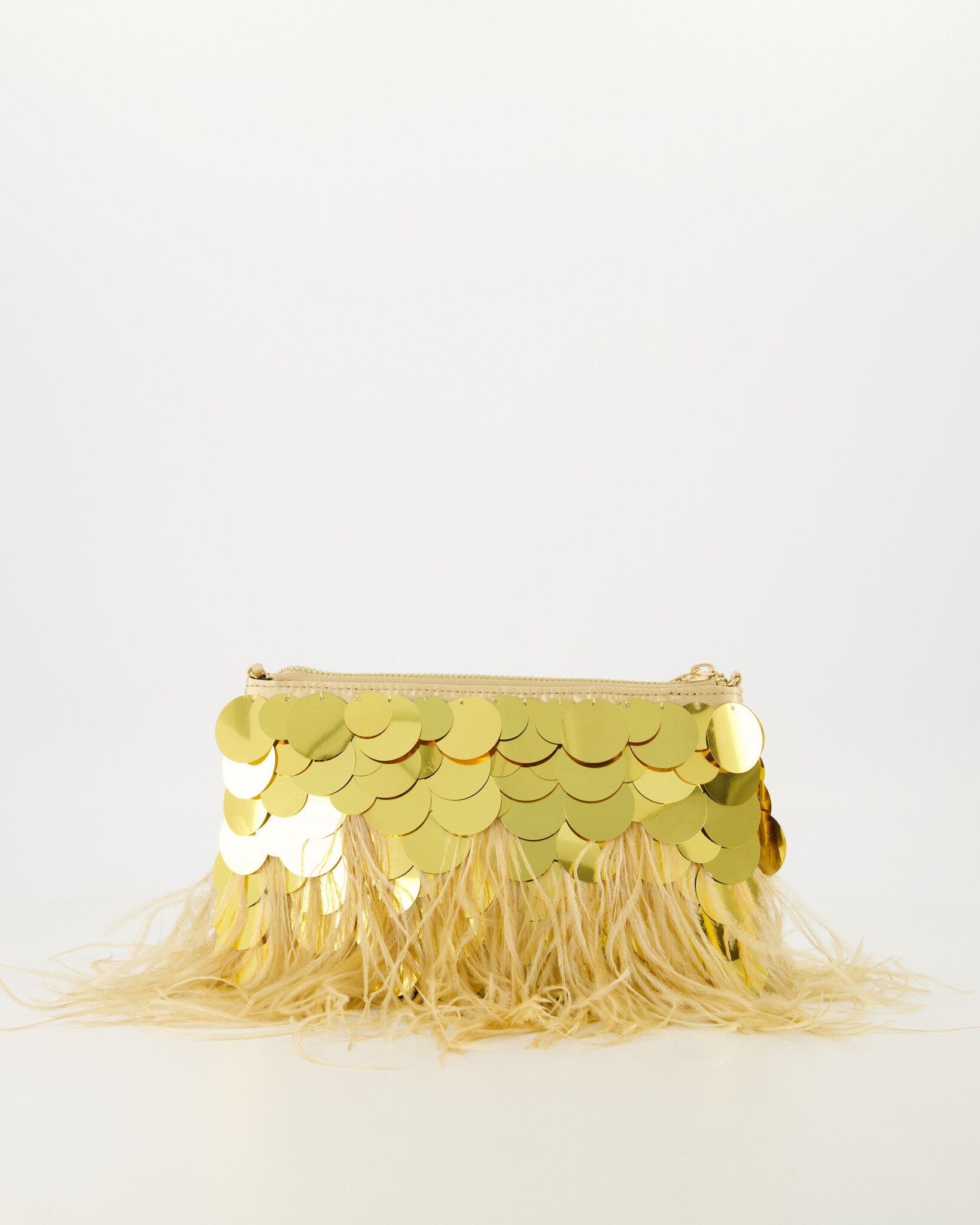 Voeg glamour toe aan elke outfit met de opvallende Adele clutch. Versierd met gouden pailletten en weelderige franjes is deze clutch perfect voor feestjes en speciale gelegenheden. De tas biedt voldoende ruimte voor essentials zoals telefoon, sleutels en make-up, en heeft een handige ritssluiting.