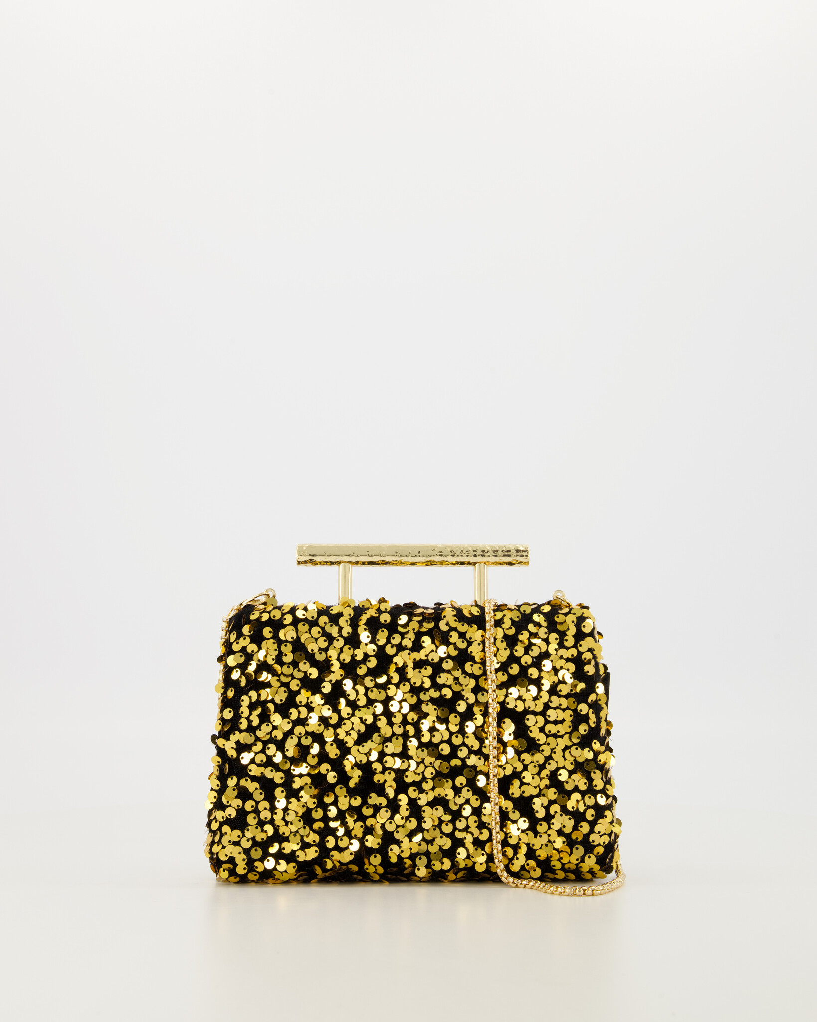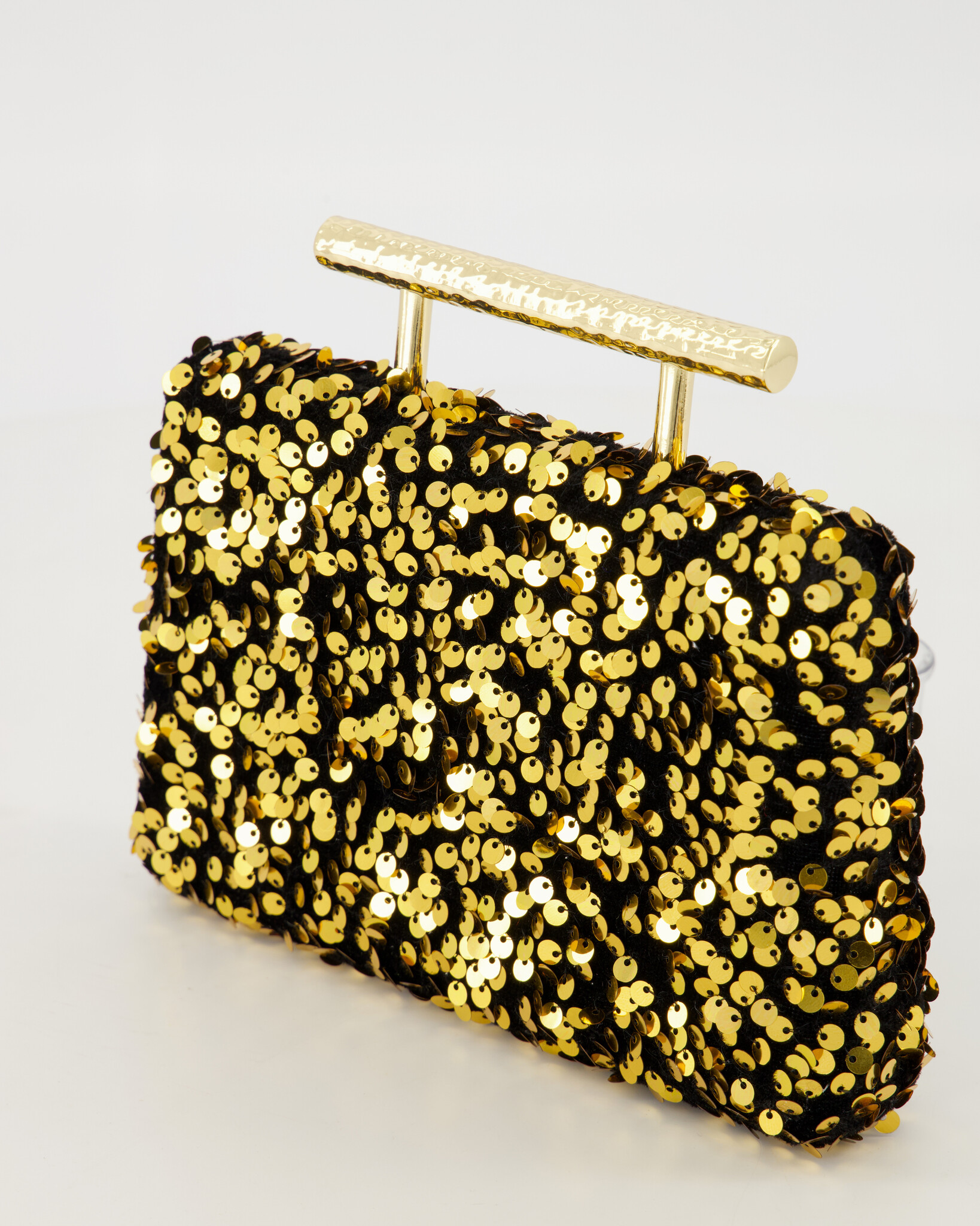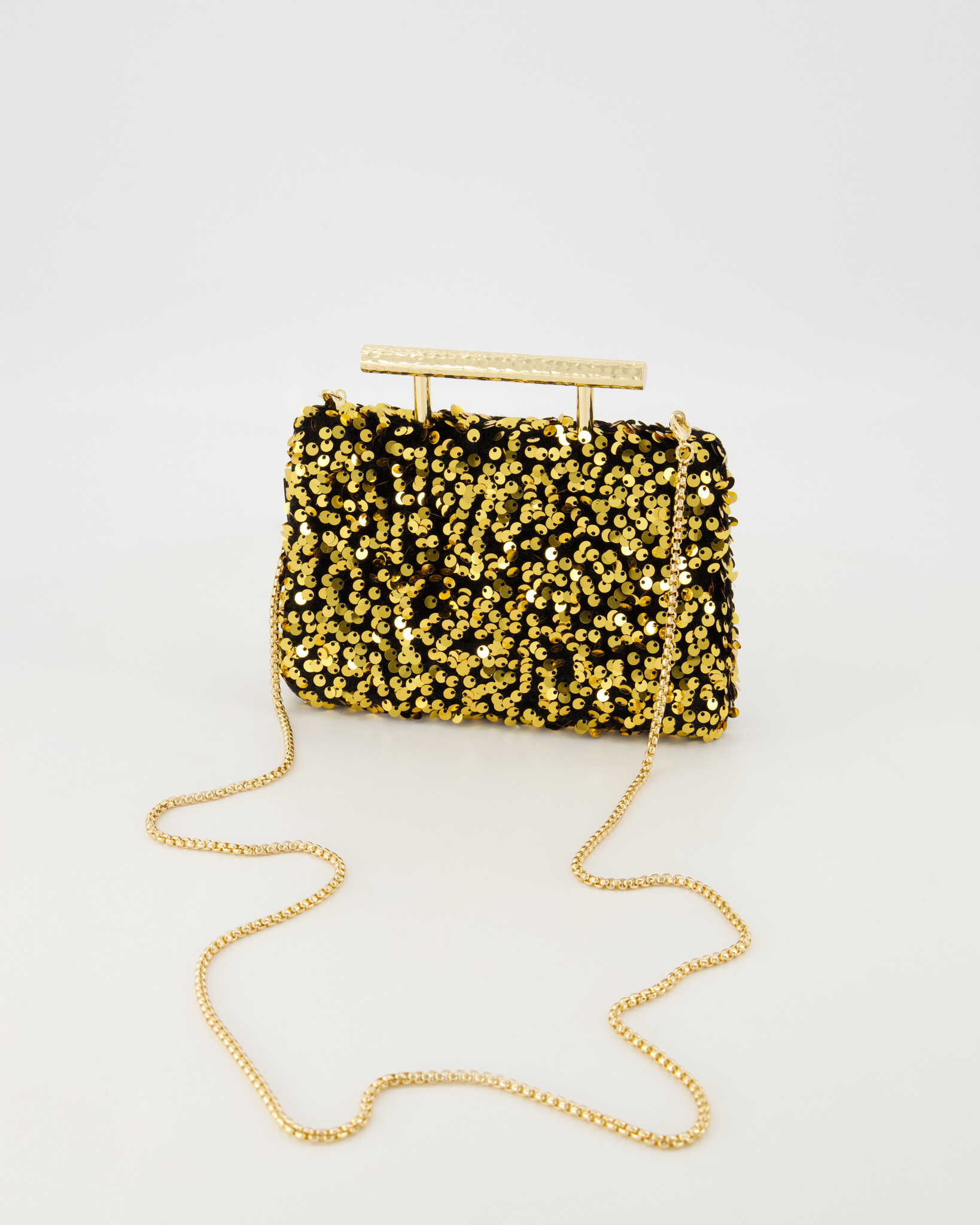 Voeg een vleugje glamour toe aan elke outfit met de Goldie clutch uit onze party collectie. Deze stijlvolle tas is volledig bedekt met schitterende gouden pailletten, waardoor hij de perfecte keuze is voor feestelijke gelegenheden, van cocktailparty’s tot gala-avonden. De clutch heeft een compact formaat, ideaal om de essentiële items mee te nemen, en een handige afneembare schouderketting voor extra draagopties. Een echte eyecatcher die elke look een luxe uitstraling geeft – de must-have accessoire voor een onvergetelijke avond.