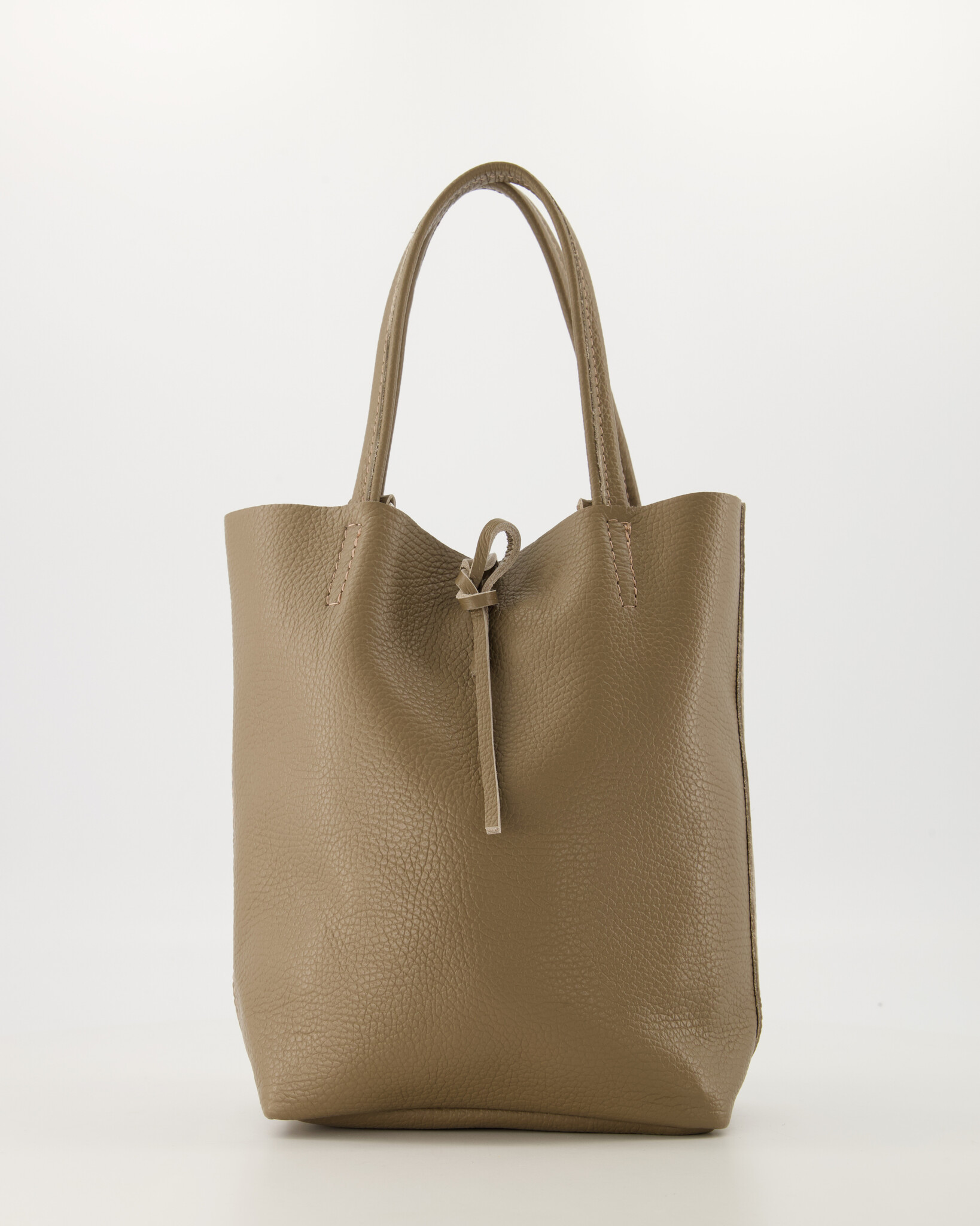 Deze leren mini shopper heeft een touwsluiting en komt met een afneembaar en verstelbaar lang hengsel om ook als crossbodytas te kunnen dragen.