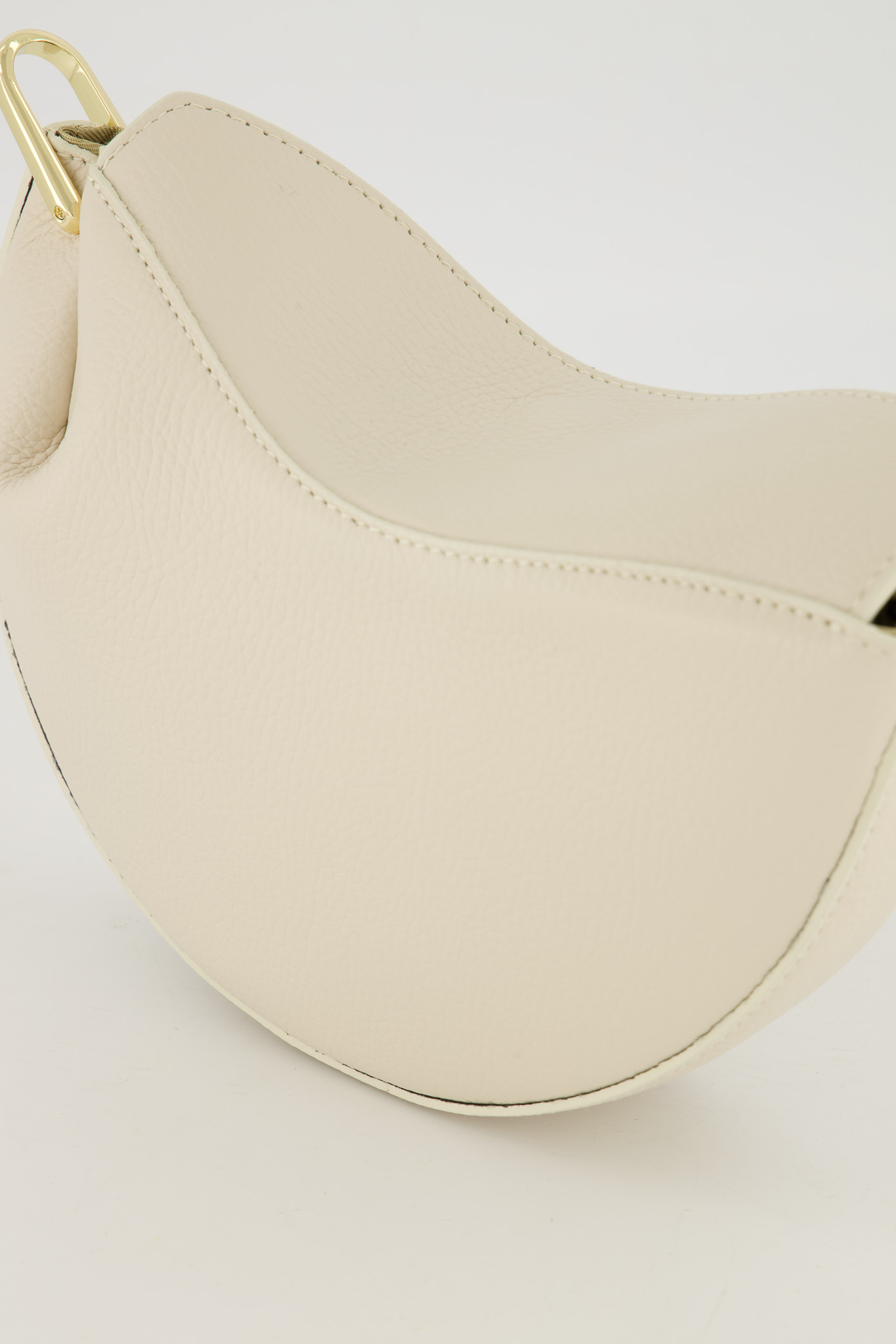 De Cookie Bag is een trendy halfronde tas van Italiaans leer met goudkleurige details. Voorzien van een verstelbare leren schouderriem en een ruim hoofdvak met ritsvakje aan de binnenkant. Sluit met een magneetsluiting voor een stijlvolle en praktische look