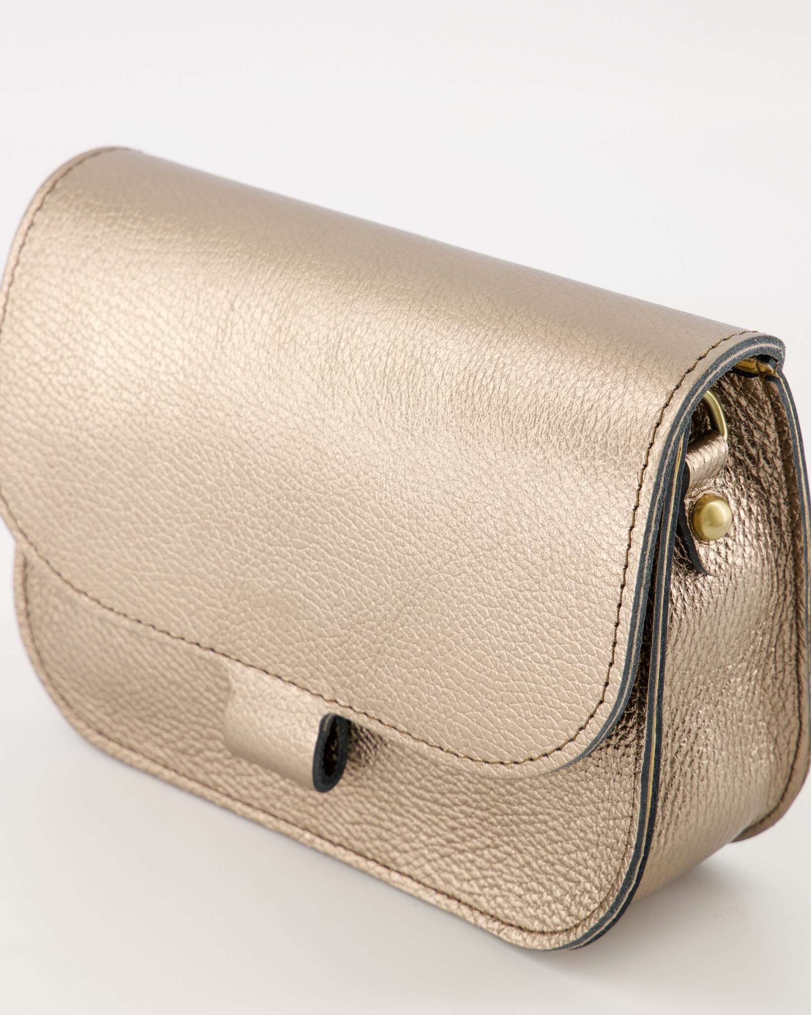 Leren crossbodytas met een magneetsluiting en een lang verstelbaar hengsel.