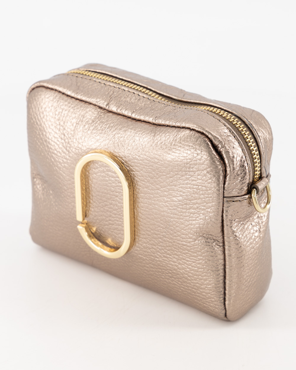Jacine is een metallic leren crossbody tas met die gesloten wordt door middel van een ritssluiting. De tas heeft een leren afneembaar en verstelbaar hengsel. Aan de binnenzijde van de Jacine tas zit een ritsvakje.