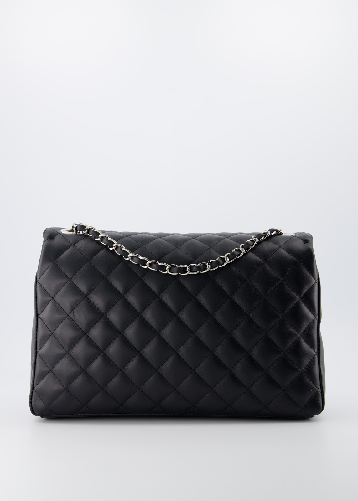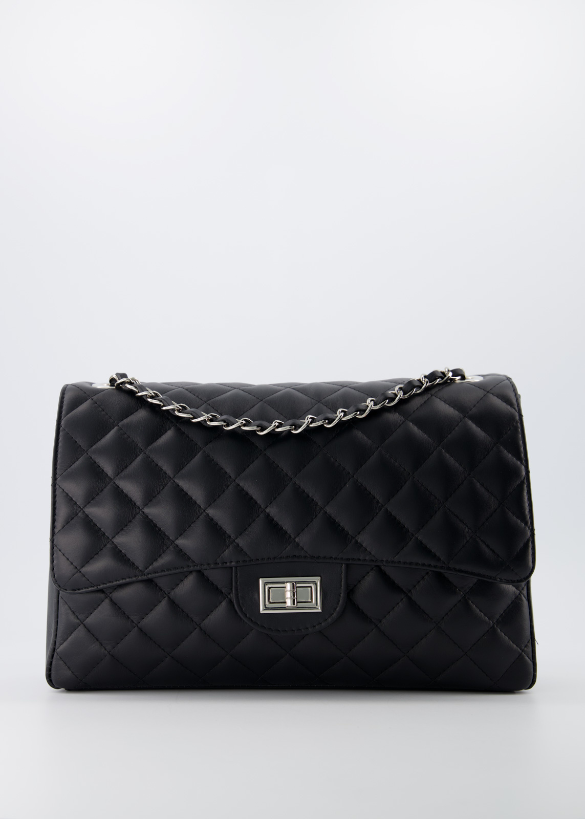Leren crossbodytas met een lang kettinghengsel. De tas heeft twee grote binnenvakken en een afsluitbaar binnenvak.