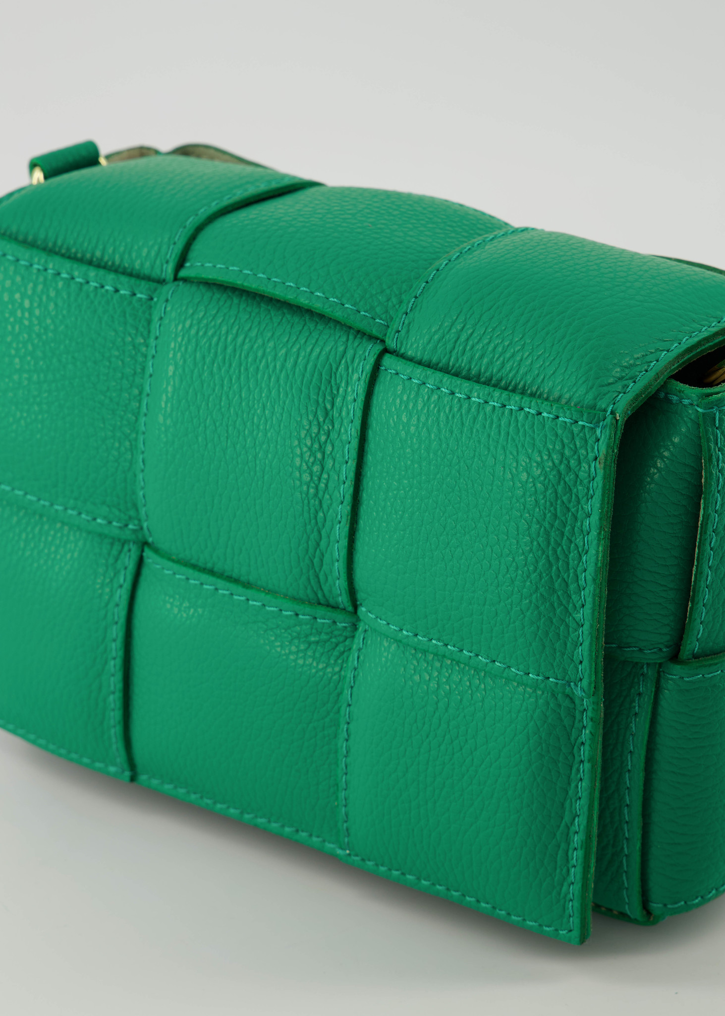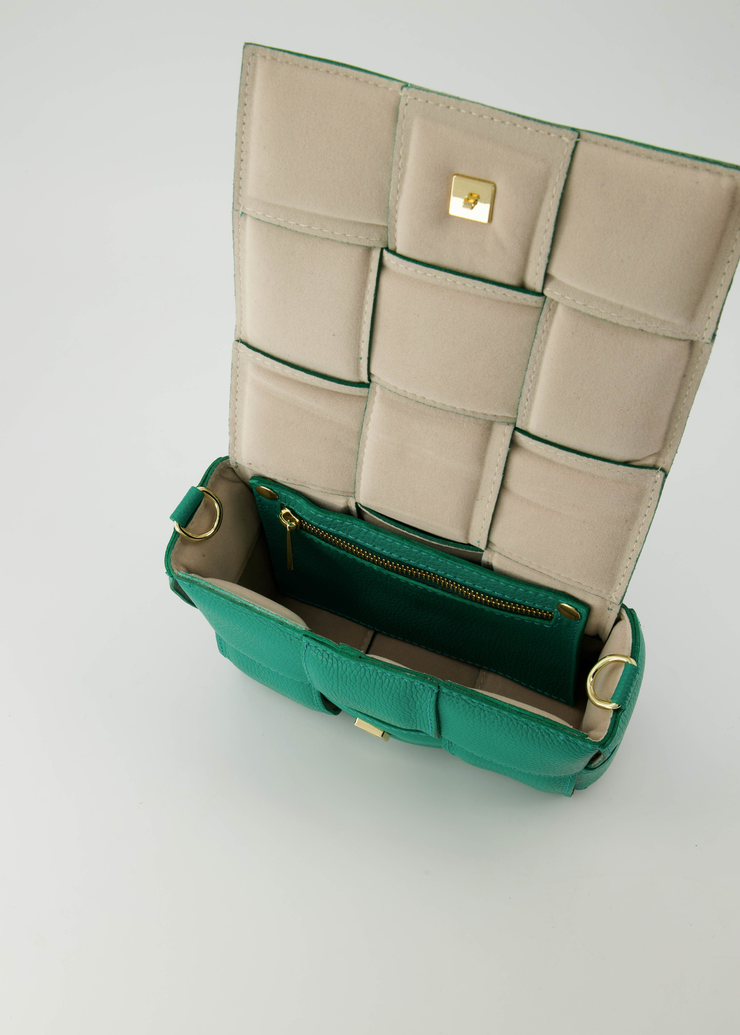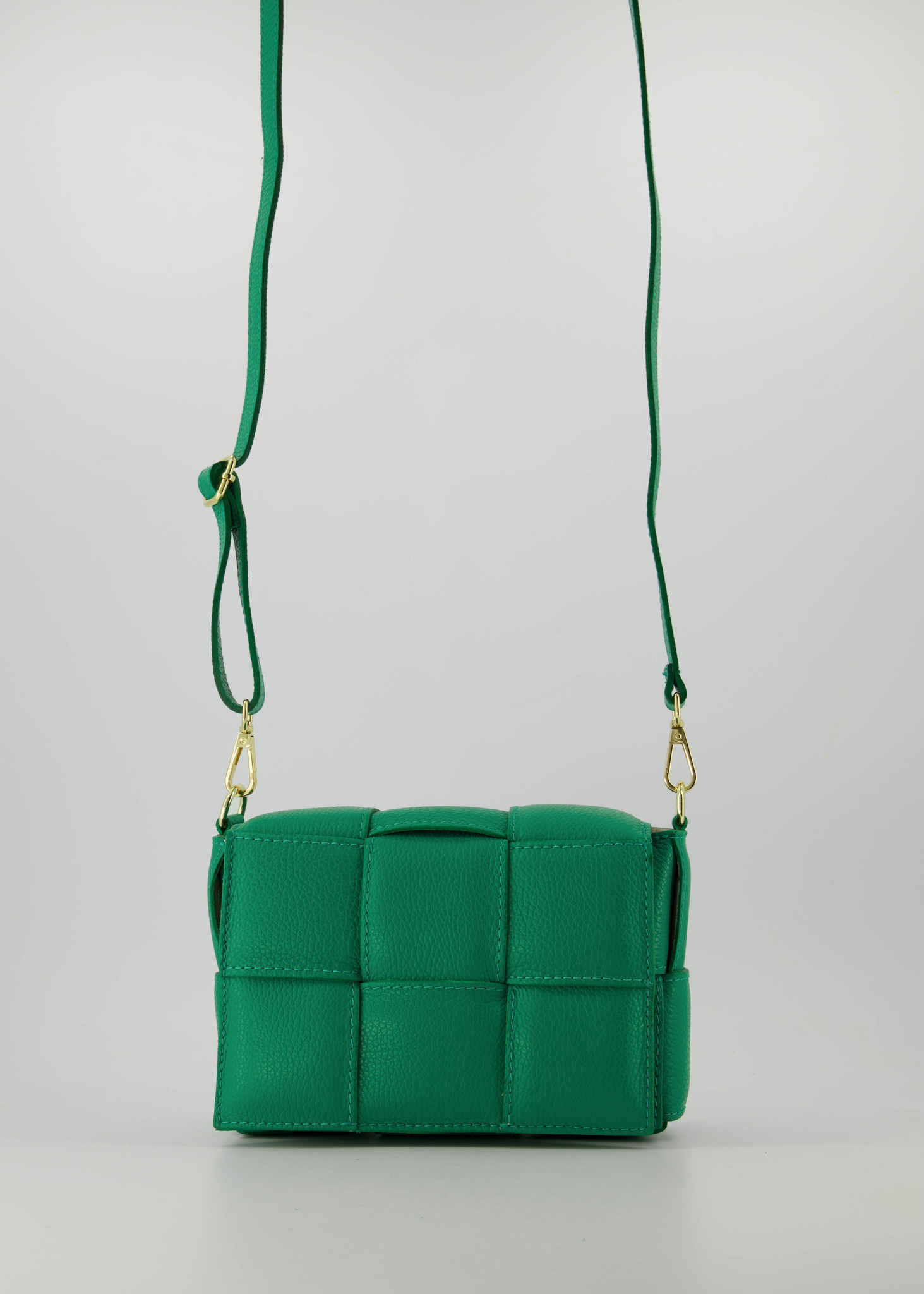 De Jess tas is gemaakt van genuine leer met padded geweven patroon. De crossbody tas heeft een afneembaar en verstelbaar hengsel. De Jess sluit door middel van een kliksluiting en heeft een binnenvak met een ritsvakje.