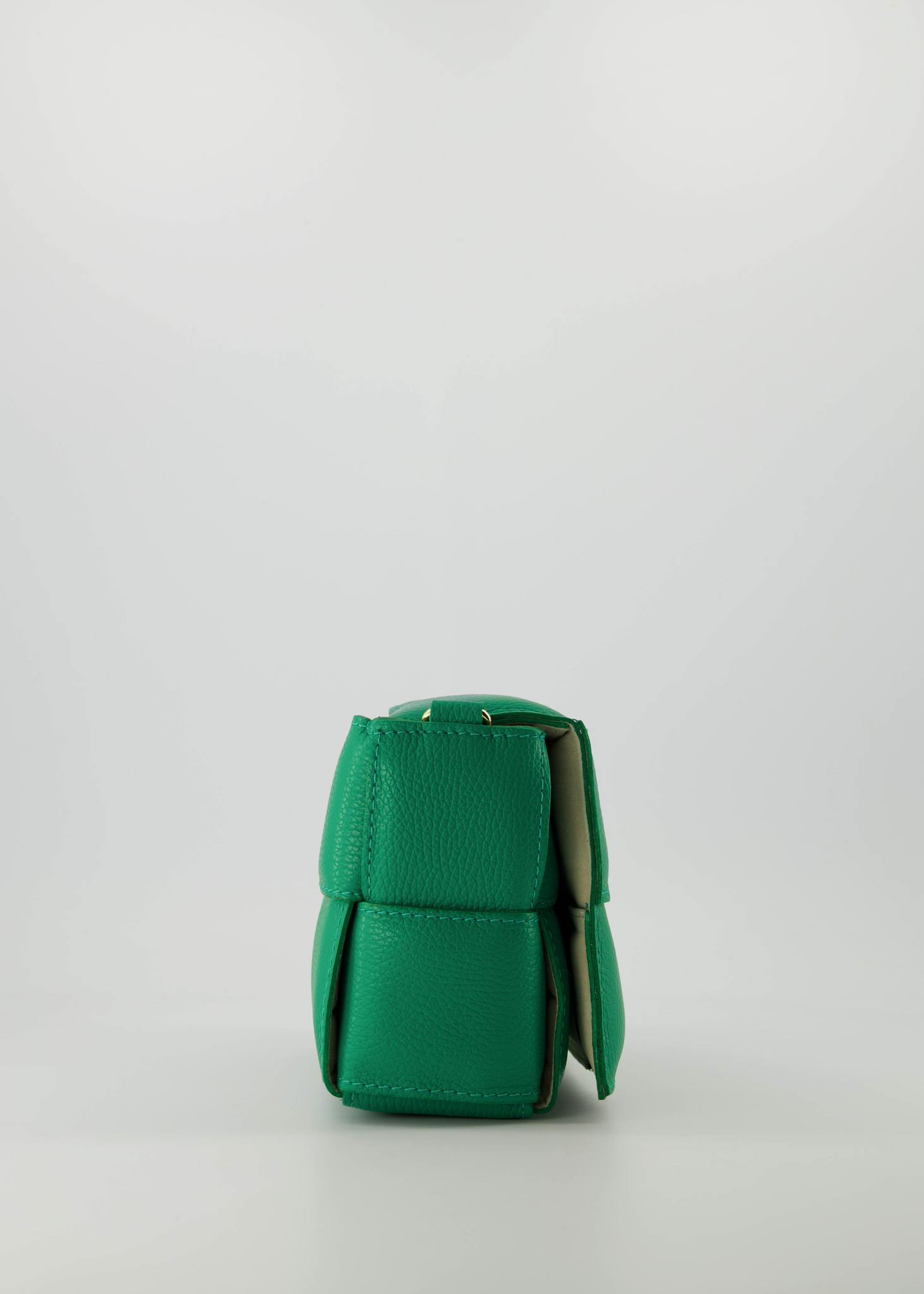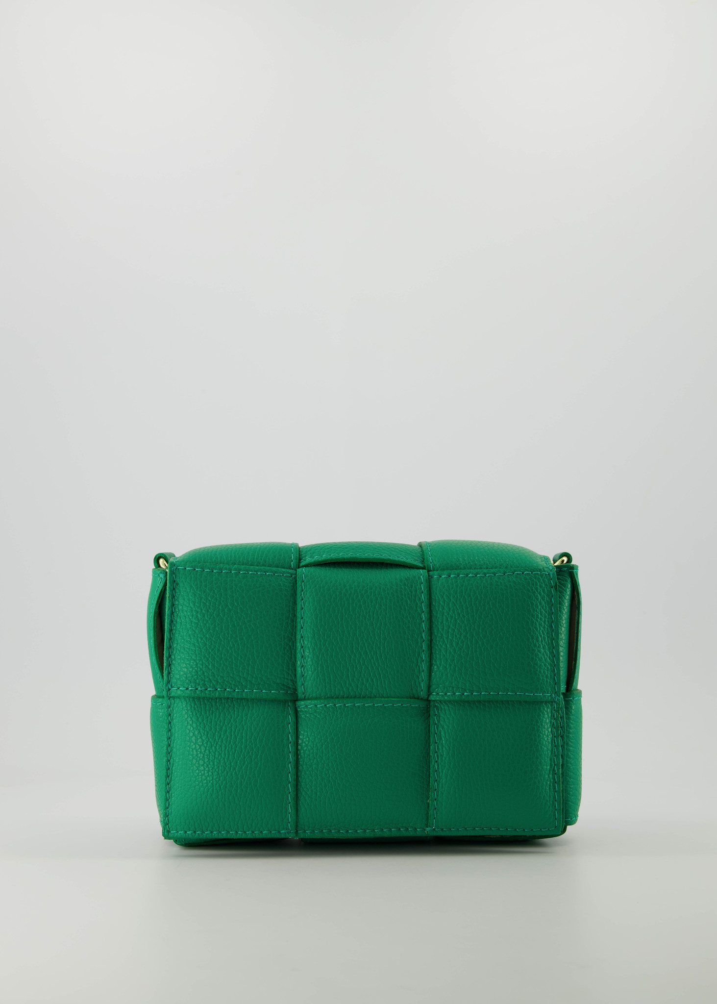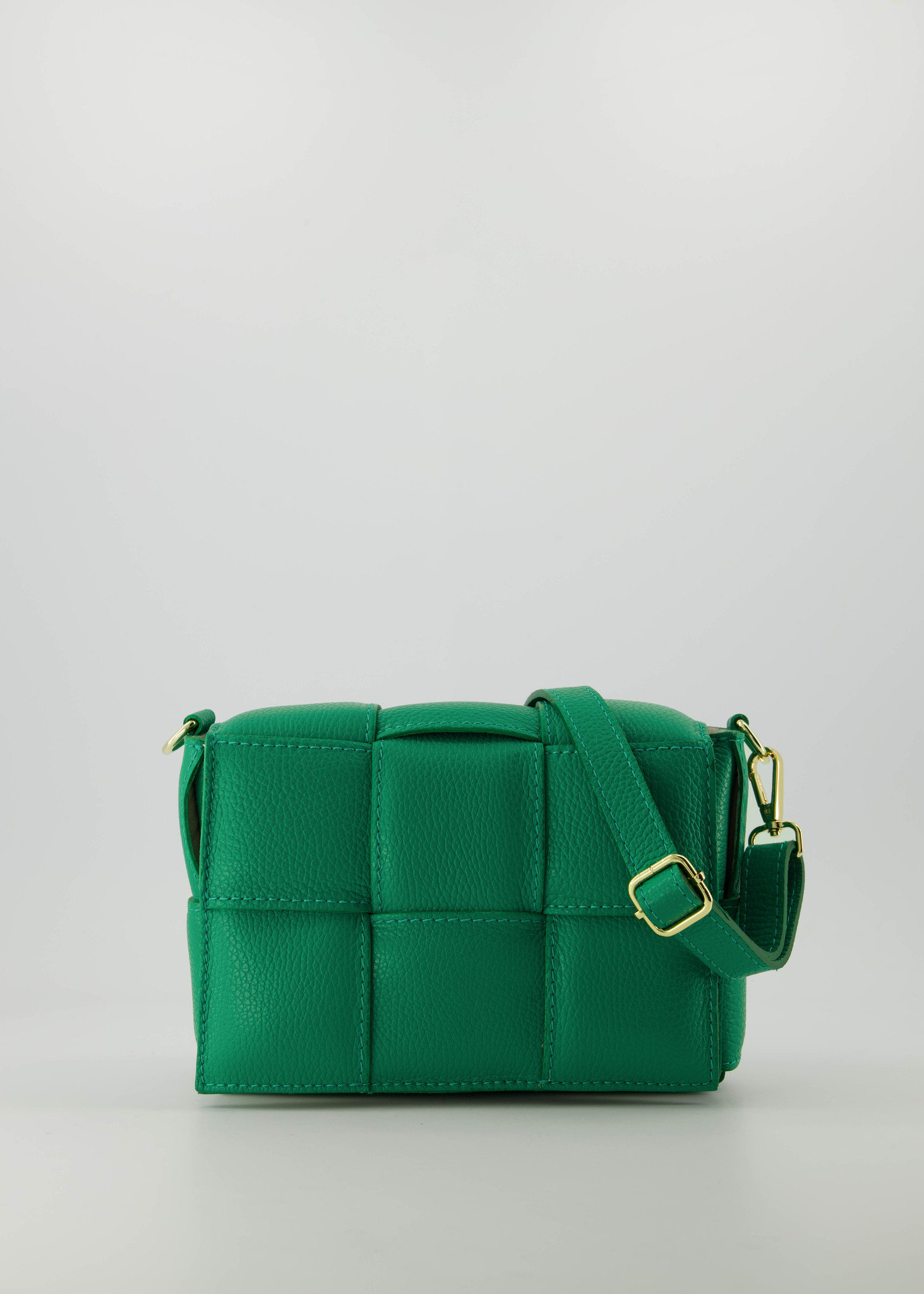 De Jess tas is gemaakt van genuine leer met padded geweven patroon. De crossbody tas heeft een afneembaar en verstelbaar hengsel. De Jess sluit door middel van een kliksluiting en heeft een binnenvak met een ritsvakje.