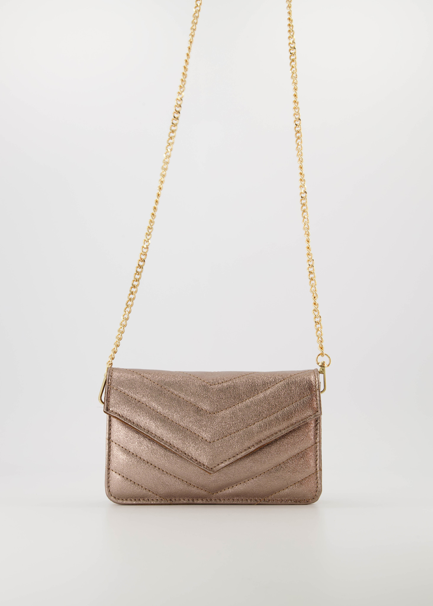 Elegant en toch opvallend, de Laurie crossbody tas is gemaakt in Italië van metallic leer met een goudkleurige schakelband. Deze tas kan worden gedragen als clutch bij een avondje uit of je kunt je handen vrij houden en hem als schouder-/crossbody tas dragen. Verkrijgbaar in meerdere kleuren en leersoorten.