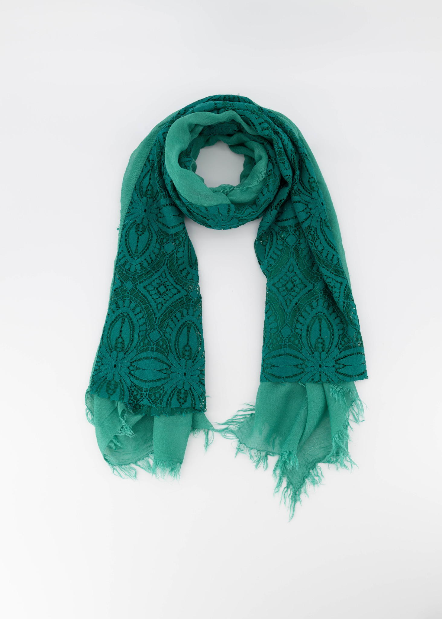 Claire is een Italiaanse effen sjaal met kanten details. De sjaal is gemaakt van: 100% Micromodal. Verkrijgbaar in diverse kleuren.