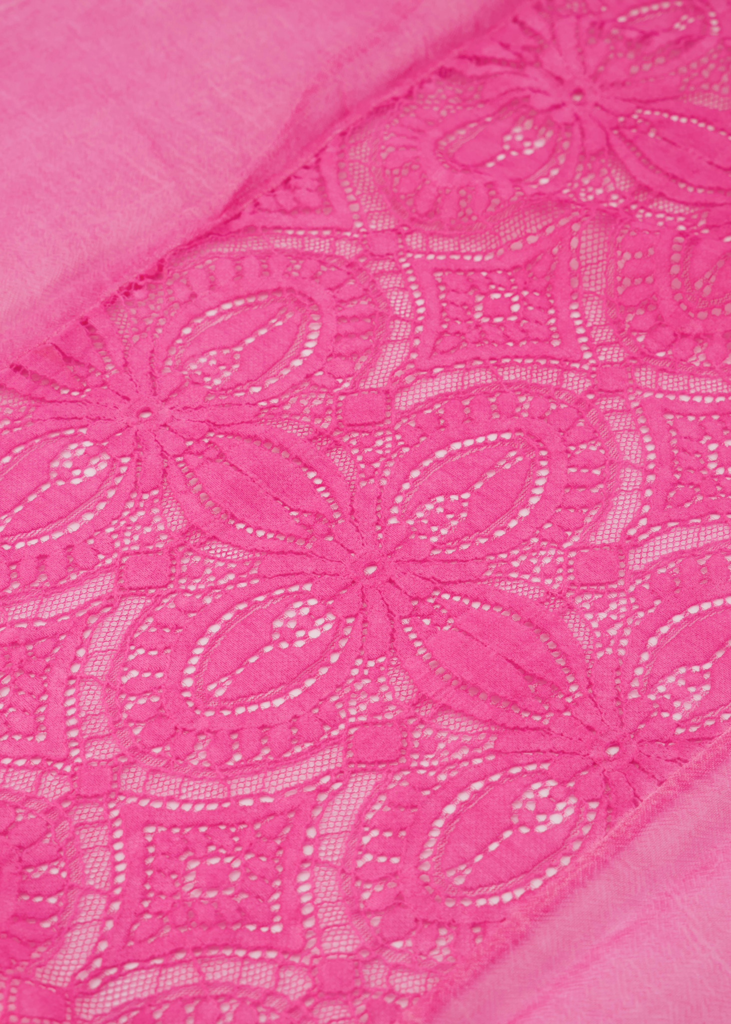Claire is een Italiaanse effen sjaal met kanten details. De sjaal is gemaakt van: 100% Micromodal. Verkrijgbaar in diverse kleuren.
