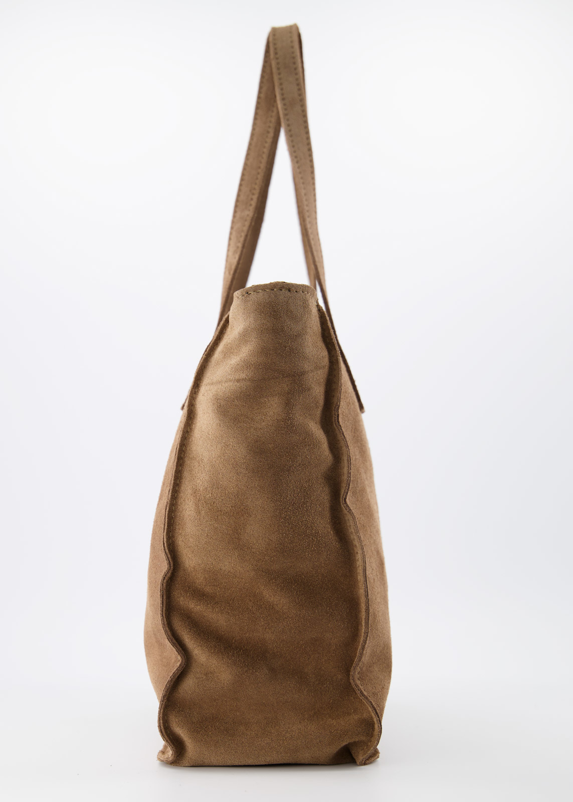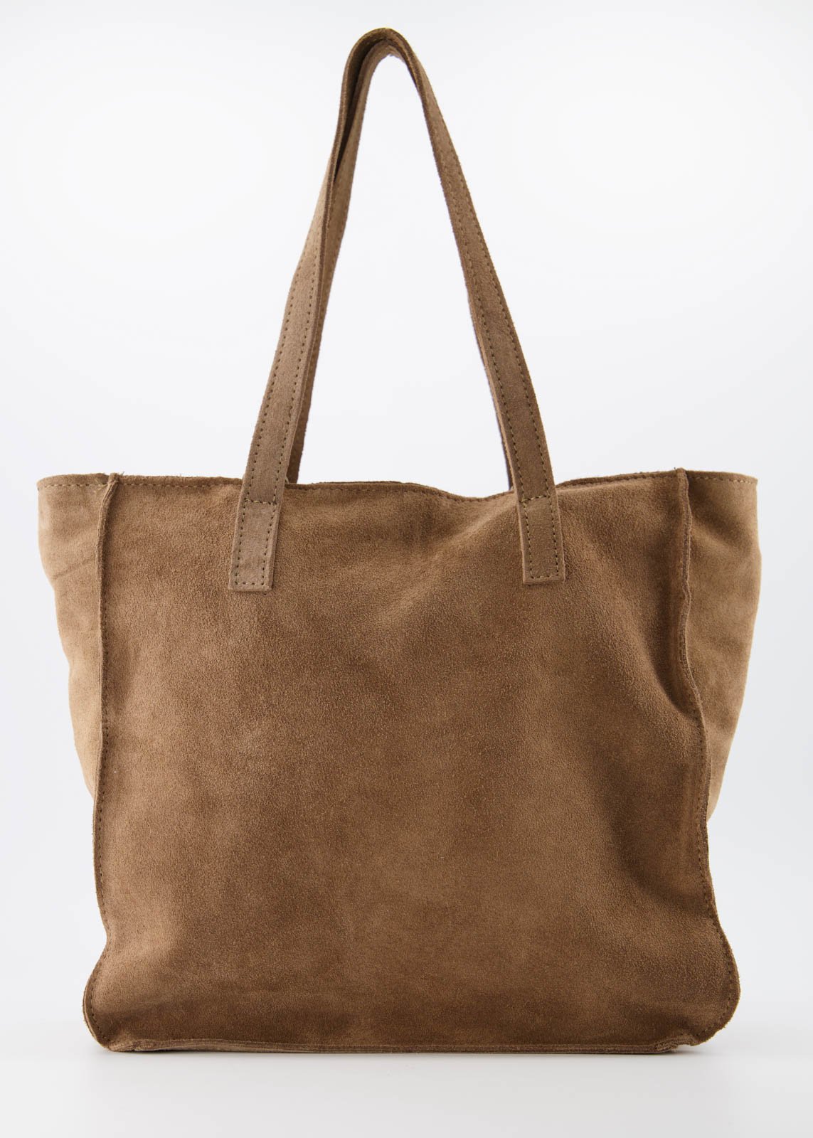 Leren handtas vervaadigd van suede die ook te dragen is als crossbodytas. De tas heeft een groot binnenvak en een afsluitbaar vakje aan de binnenzijde.