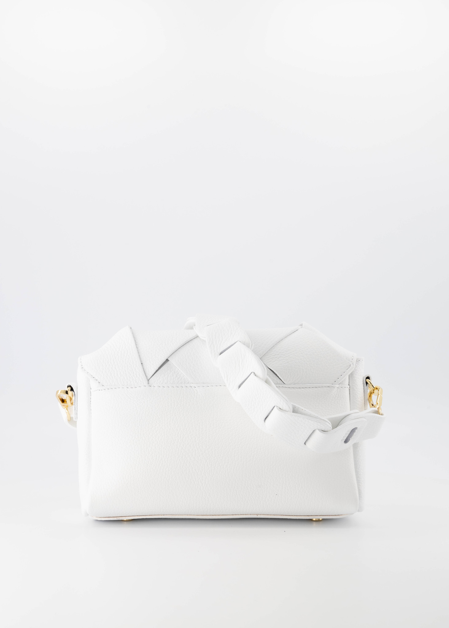 Leren gevlochten Gitta handtas die ook te dragen is als crossbodytas. De Gitta tas heeft een gevlochten hengsel en kan verwisseld worden met een afneembaar en verstelbaar hengsel.