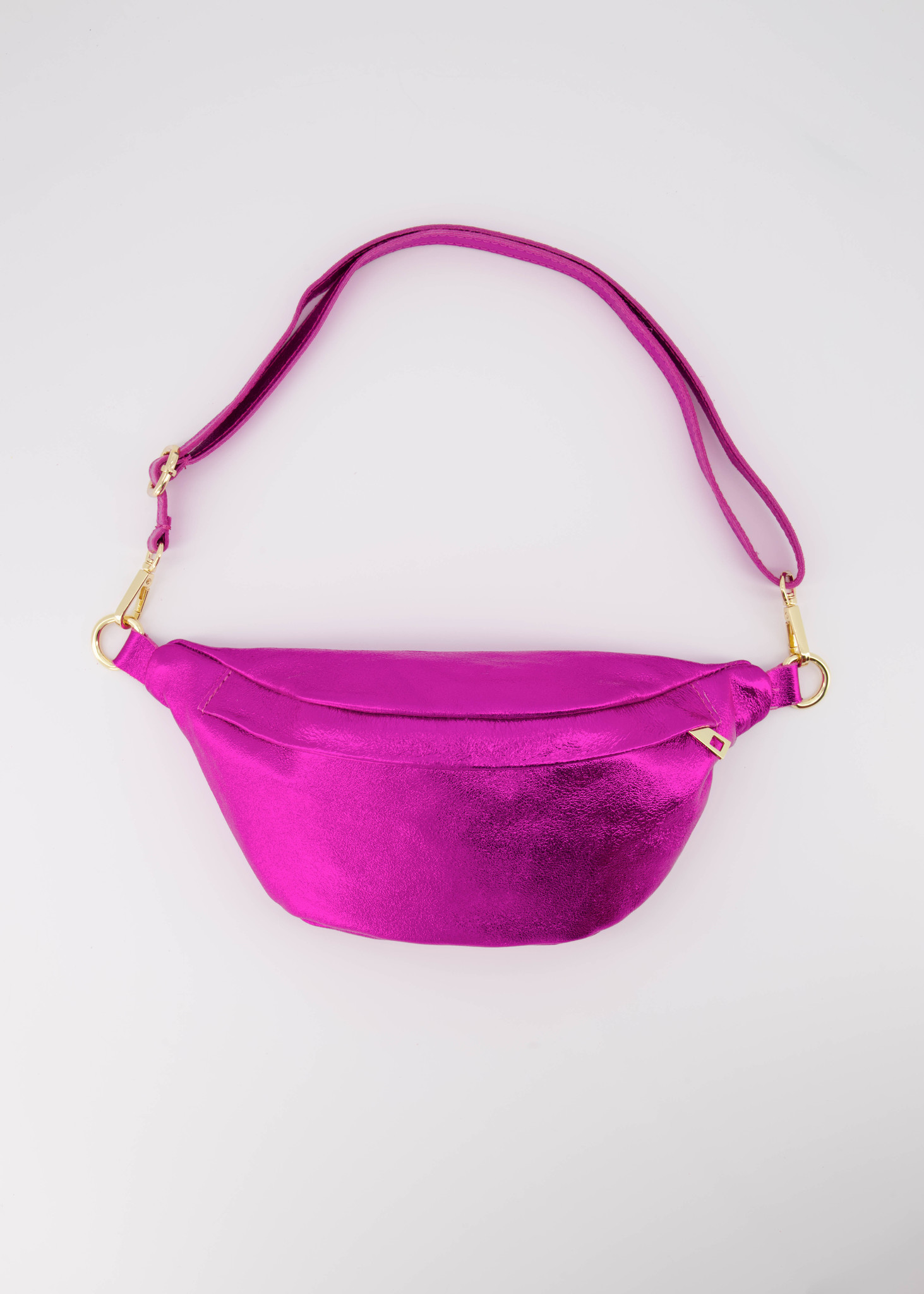 Fleur is een metallic leren heuptas die ook gedragen kan worden als crossbody tas. De heuptas heeft een afneembaar en verstelbaar hengsel. De Fleur heeft een binnenvak met aan de binnenzijde een ritsvakje. Verkrijgbaar in verschillende kleuren.