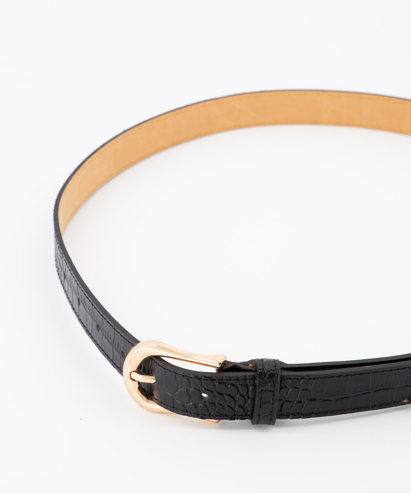 Ava - Croco - Riemen met gesp - Zwart - C28 - Goudkleurig
