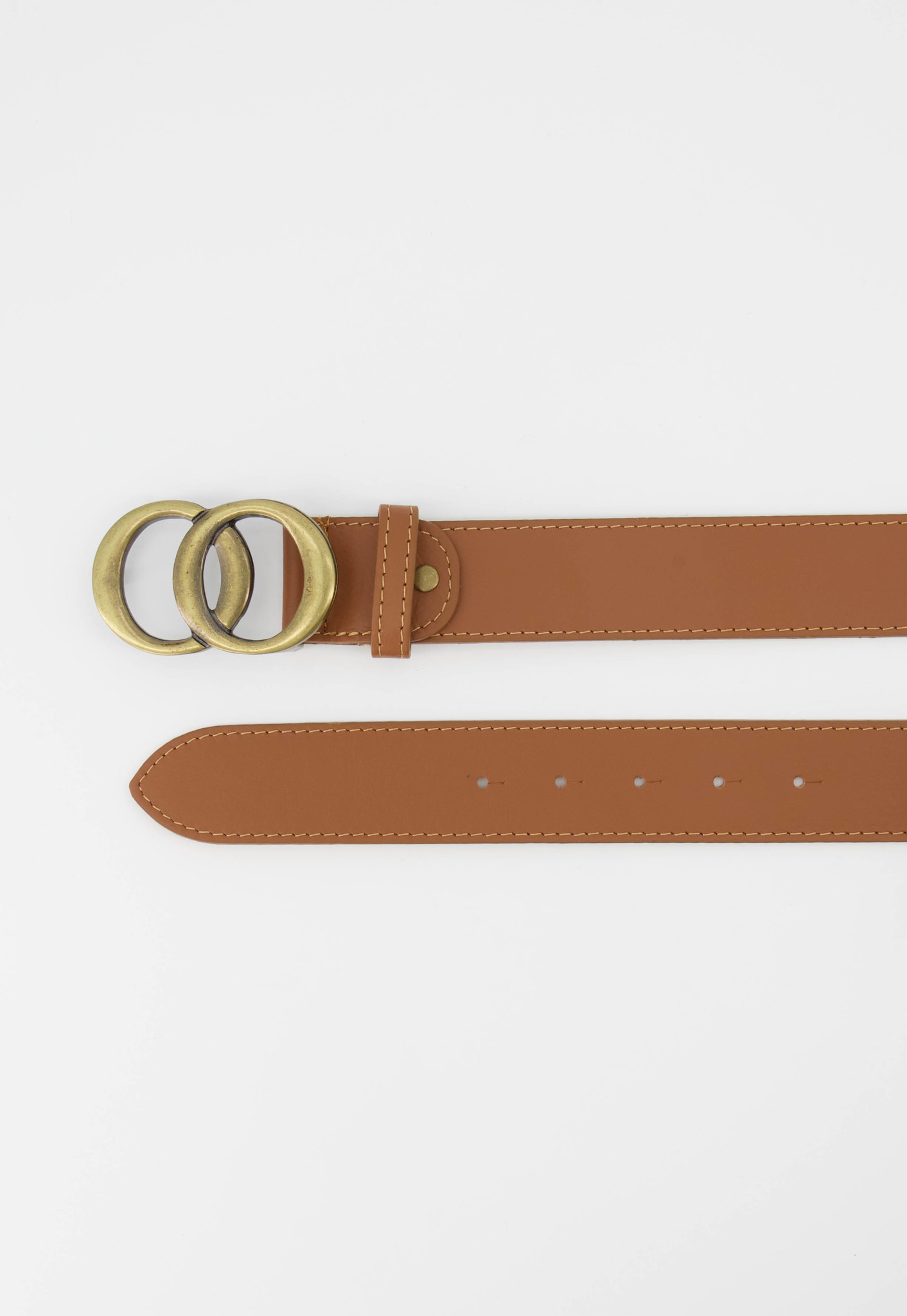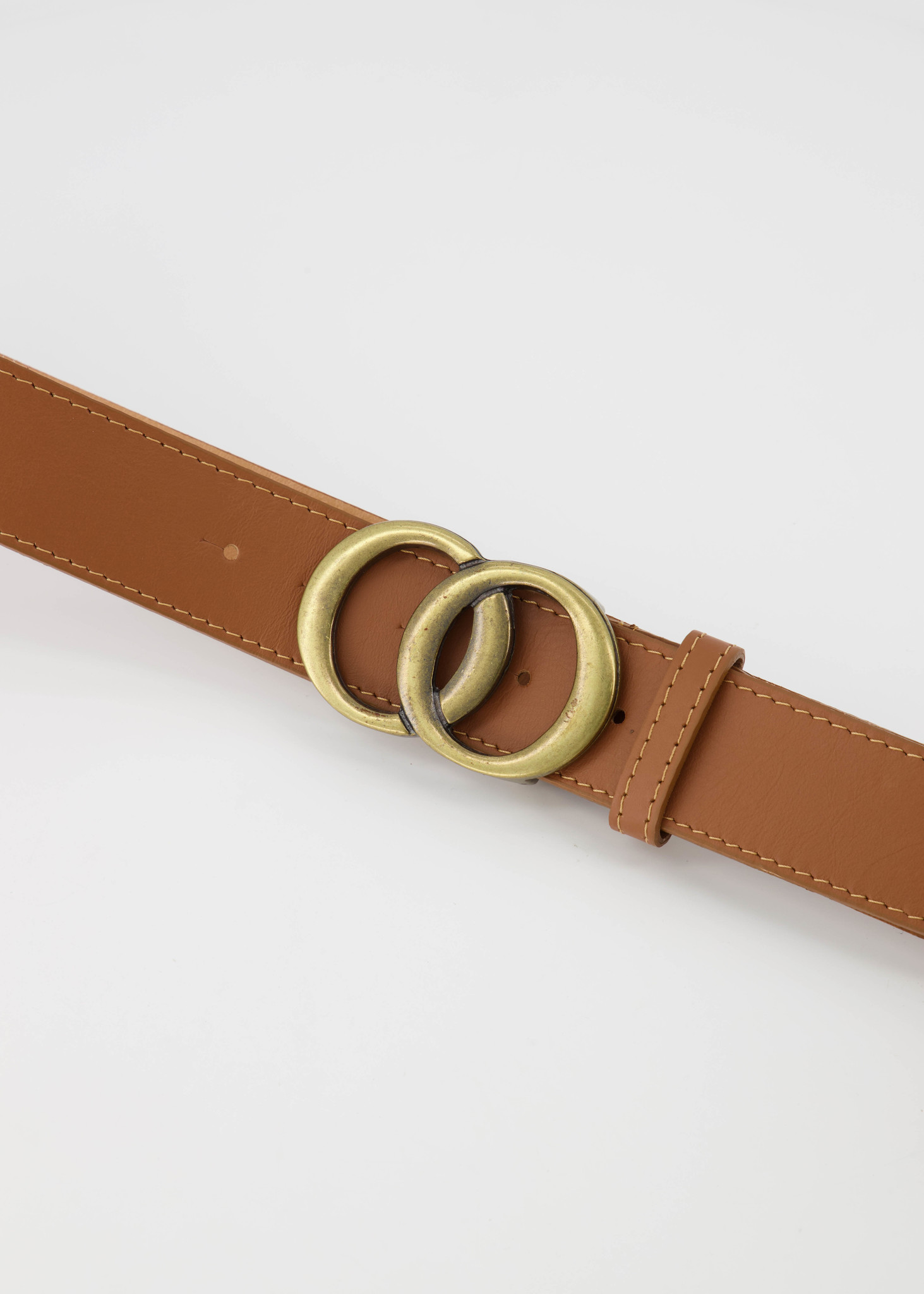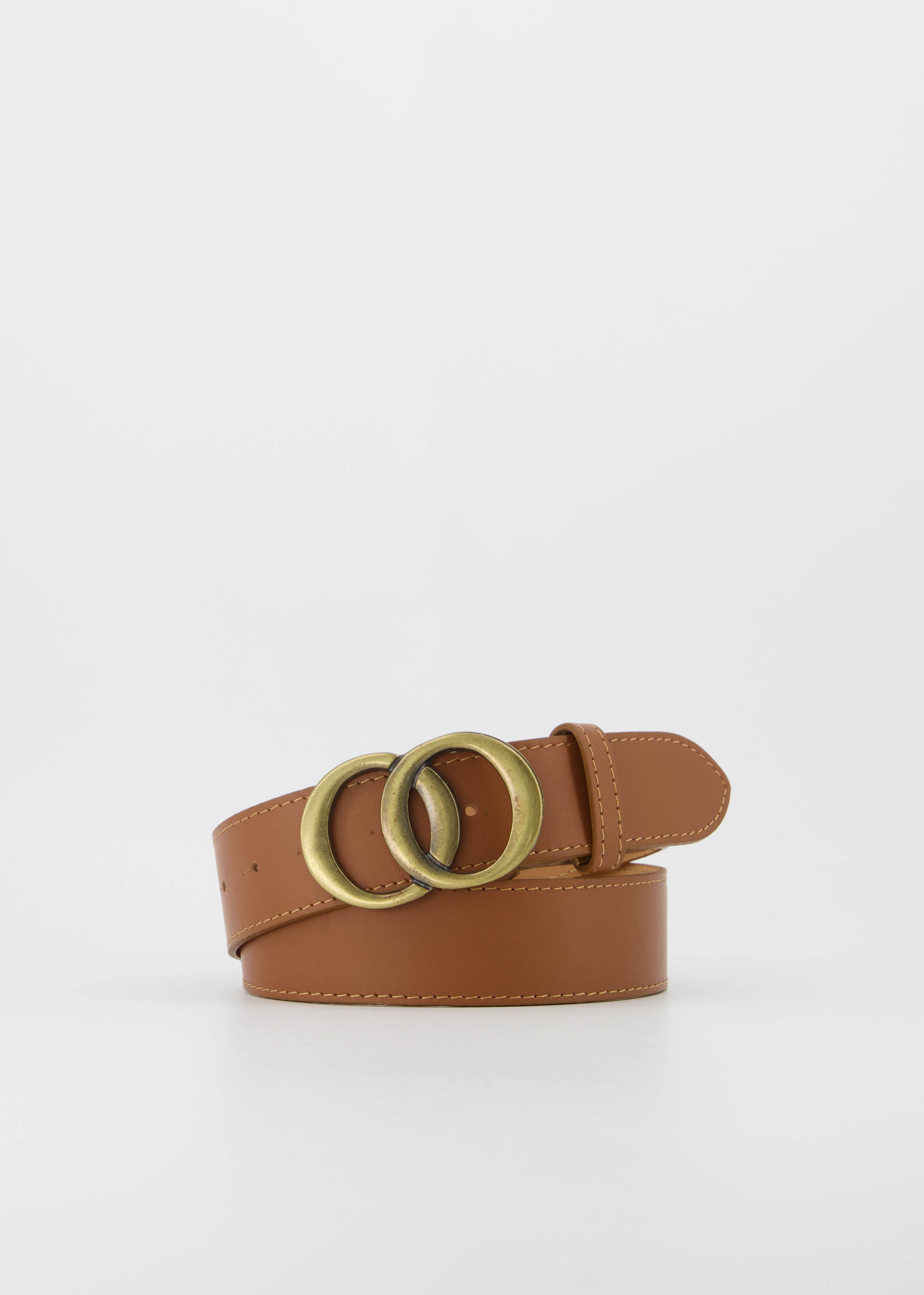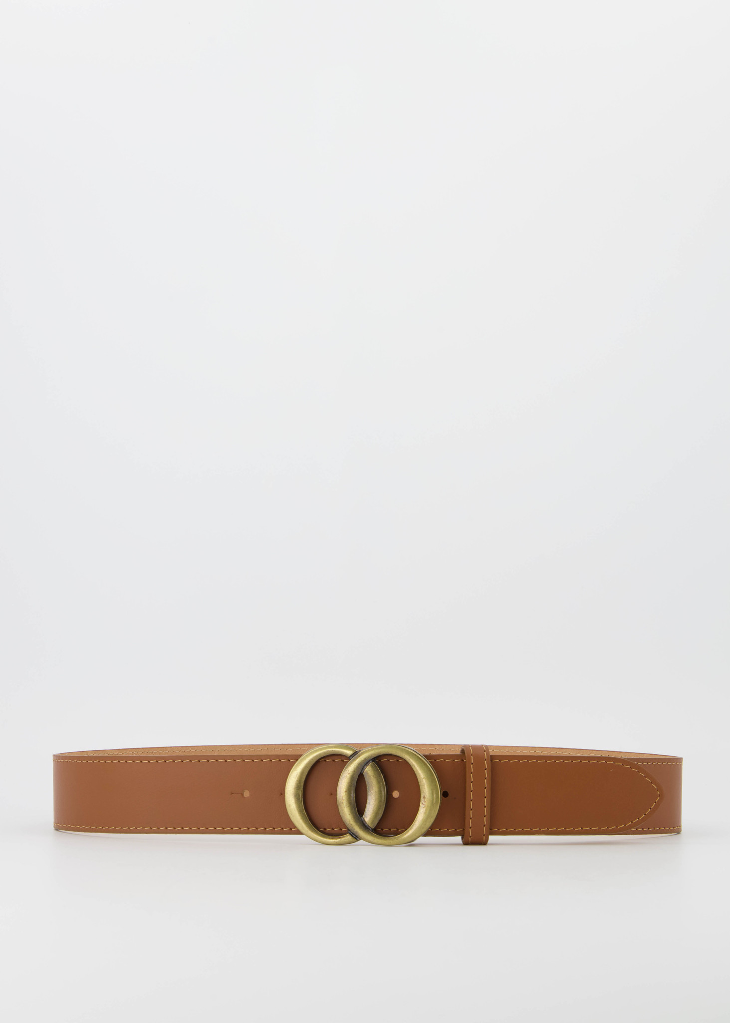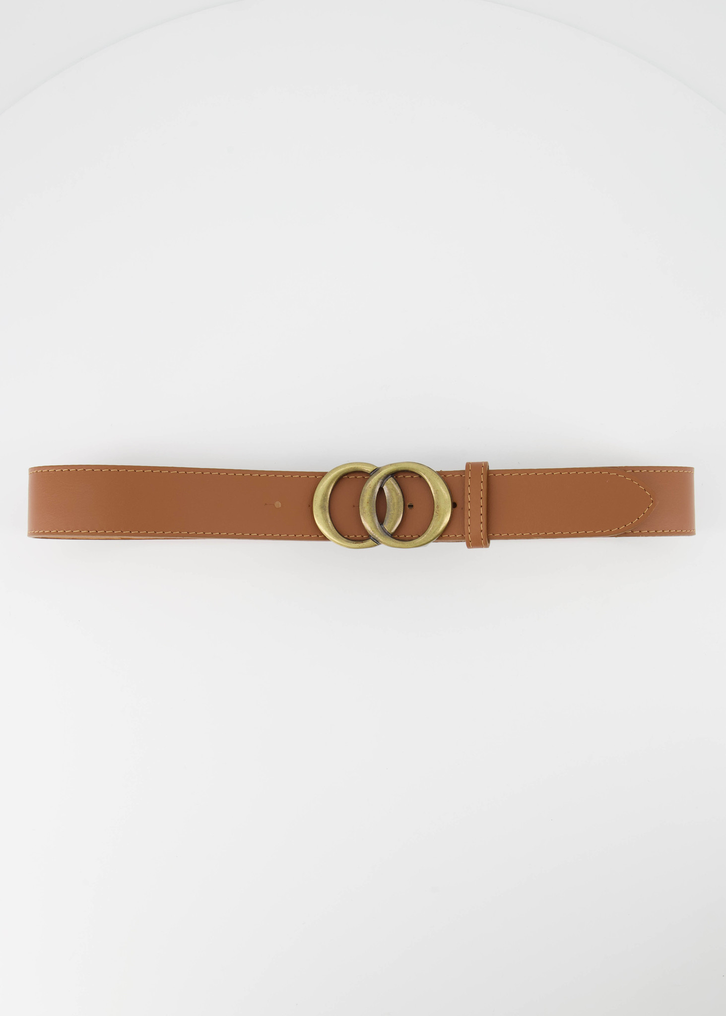 Leren riem met bronskleurige gesp, verkrijgbaar in een maat 85, 95 en 105. De riem is 4 cm breed.