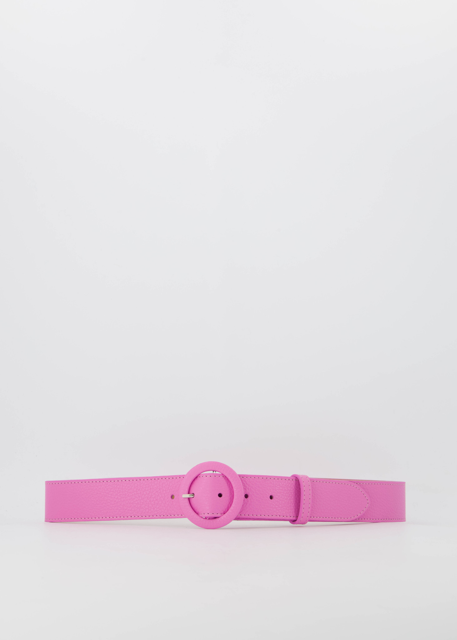 Leren riem met ronde gesp. De Marjolein riem is ideaal om de outfit helemaal af te maken. Verkrijgbaar in diverse kleuren. De riem is 4 cm breed en verkrijgbaar in maat 85, 95 en 105 cm.