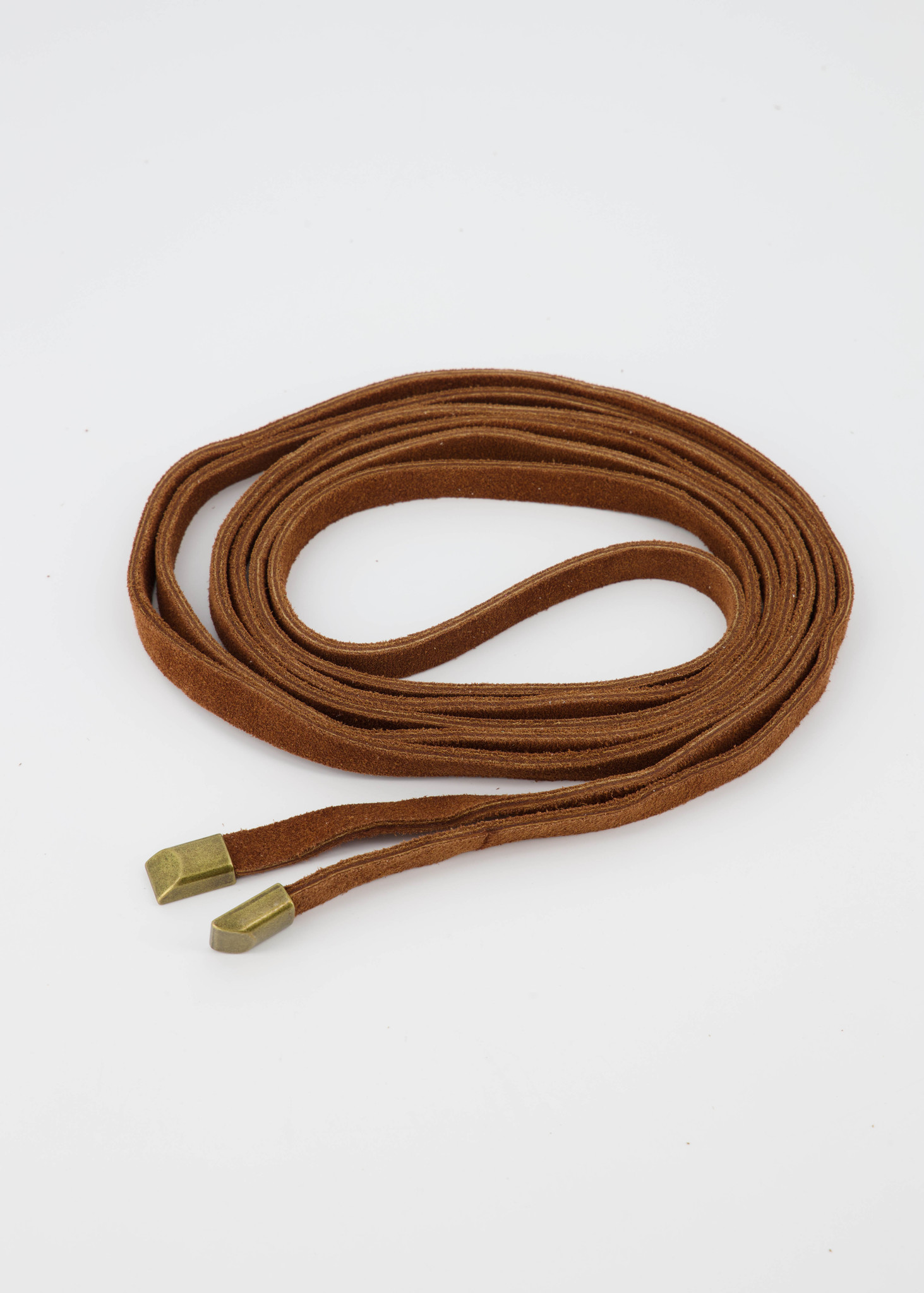 Suede leren wikkelriem met touwsluiting, verkrijgbaar in een maat.