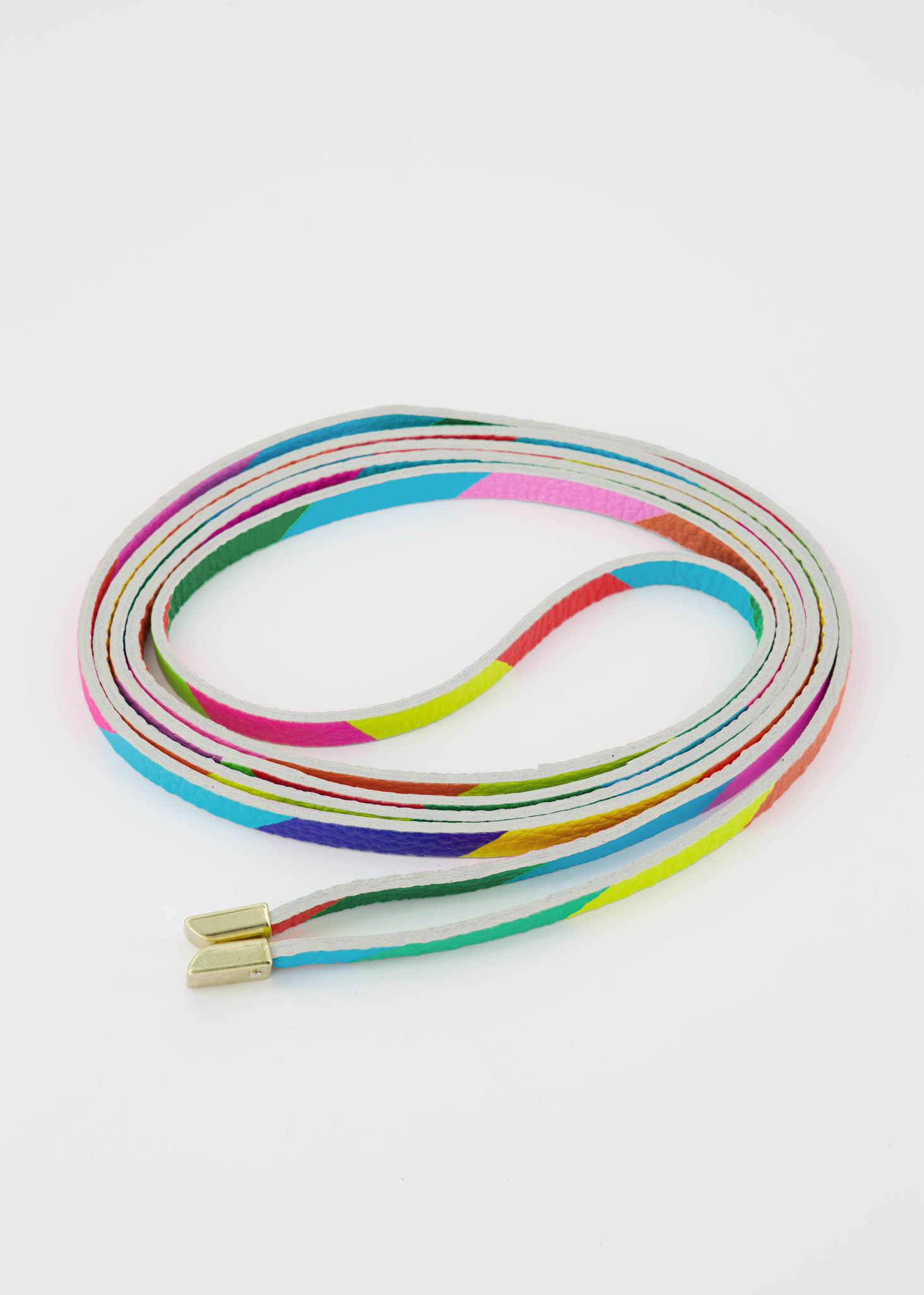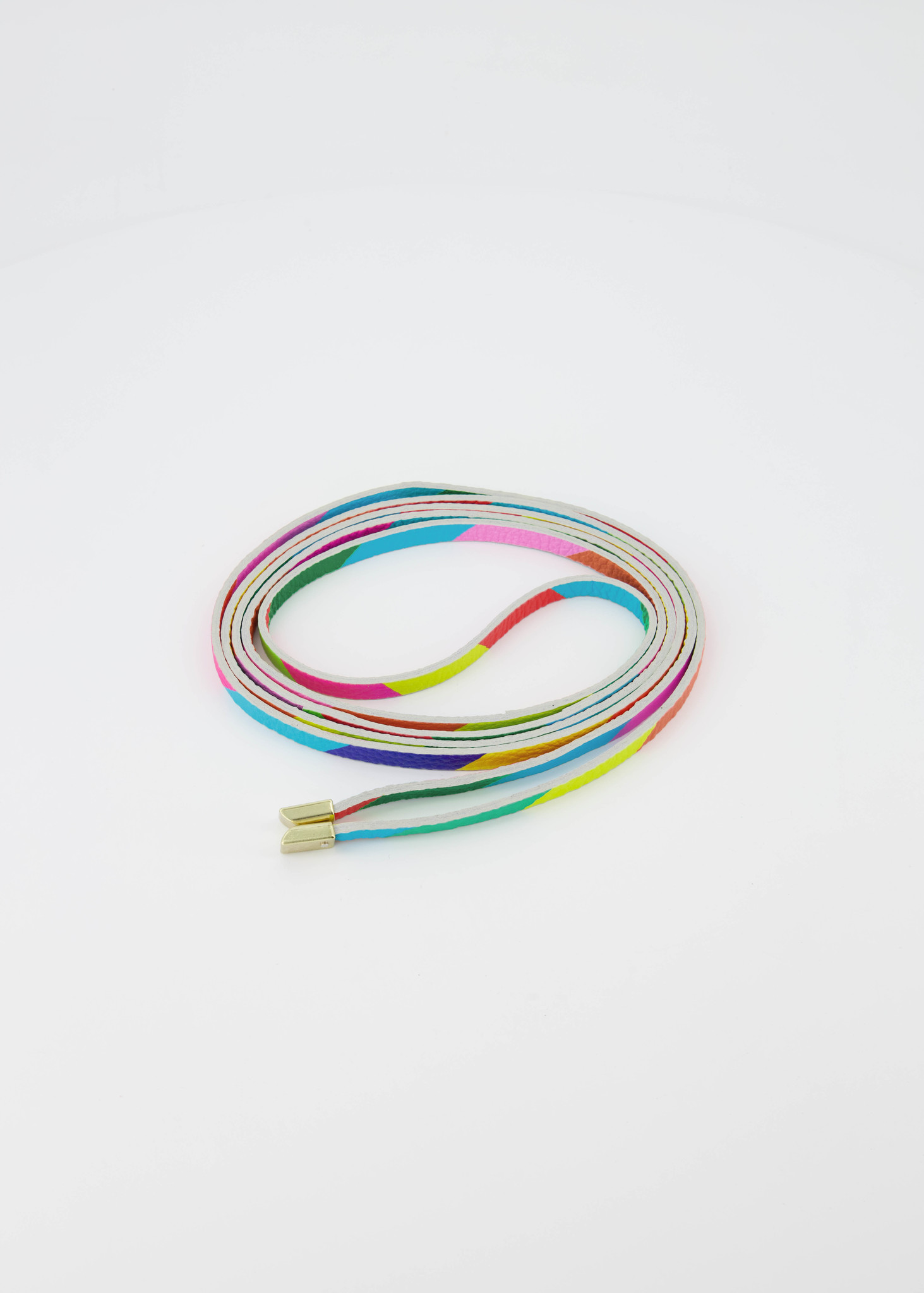 Leren metallic wikkelriem met touwsluiting, verkrijgbaar in een maat.