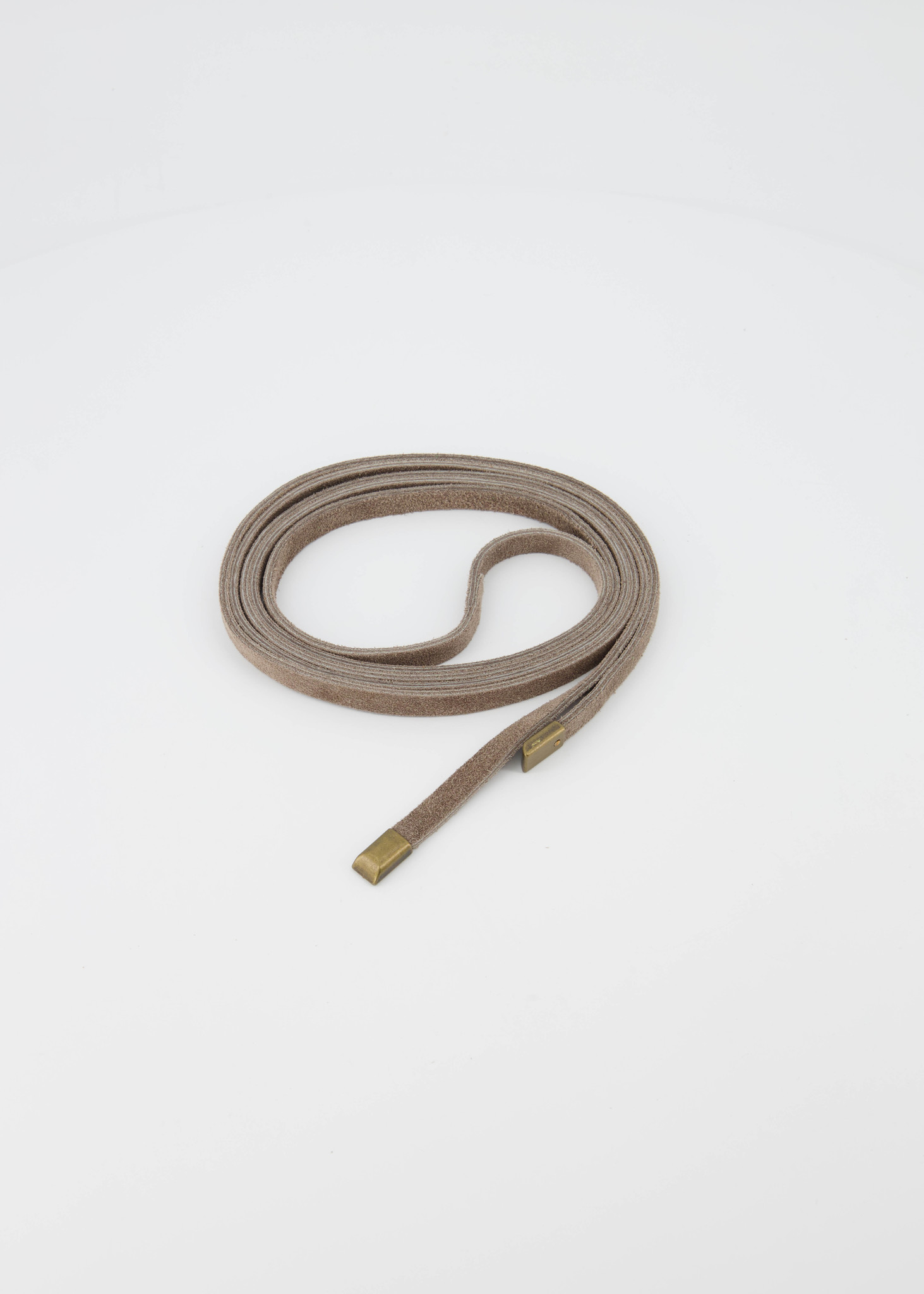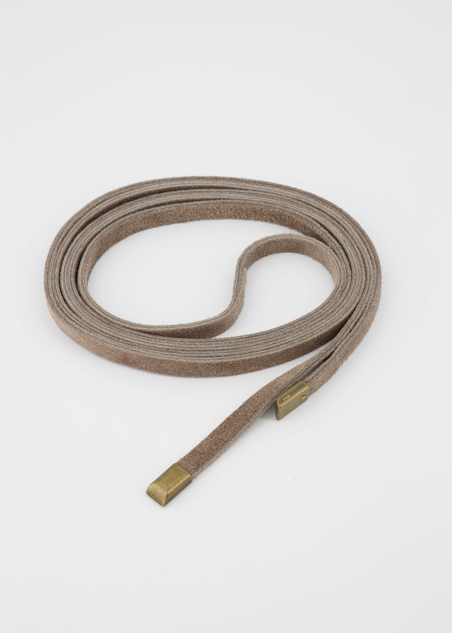 Suede leren wikkelriem met touwsluiting, verkrijgbaar in een maat.