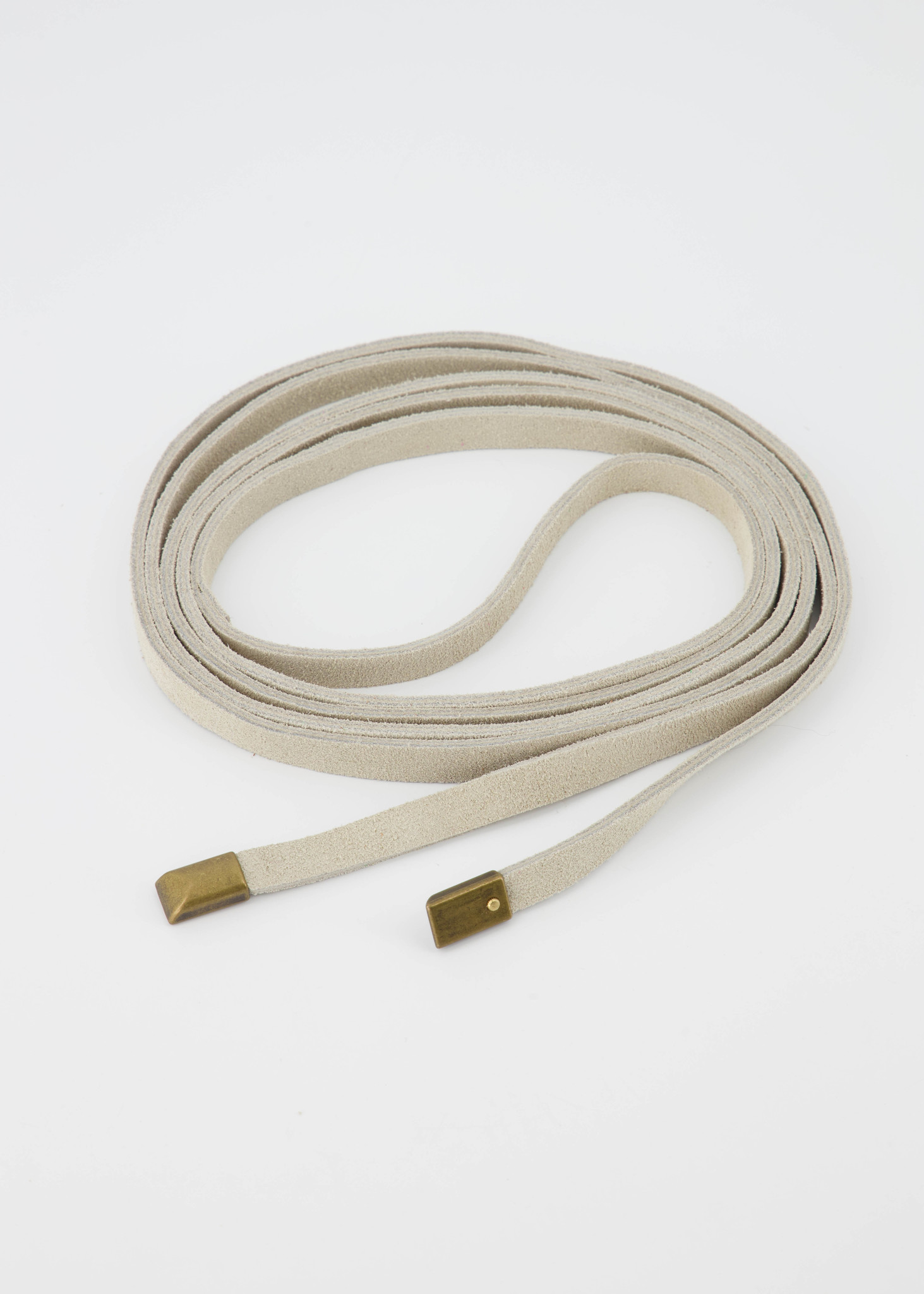 Suede leren wikkelriem met touwsluiting, verkrijgbaar in een maat.