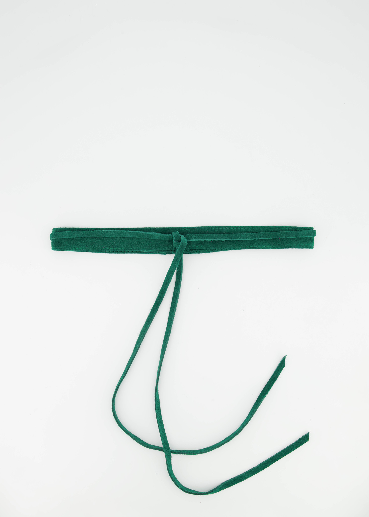 Suede dunne wikkelriem, ook te dragen als tailleriem.