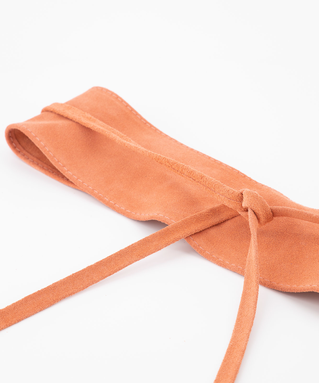 Suede leren wikkelriem met touwsluiting, verkrijgbaar in een maat. Brede gedeelte is 83 cm lang en de uiteindes zijn ieder 90 cm lang (Lengte kan hier en daar een beetje verschillen).